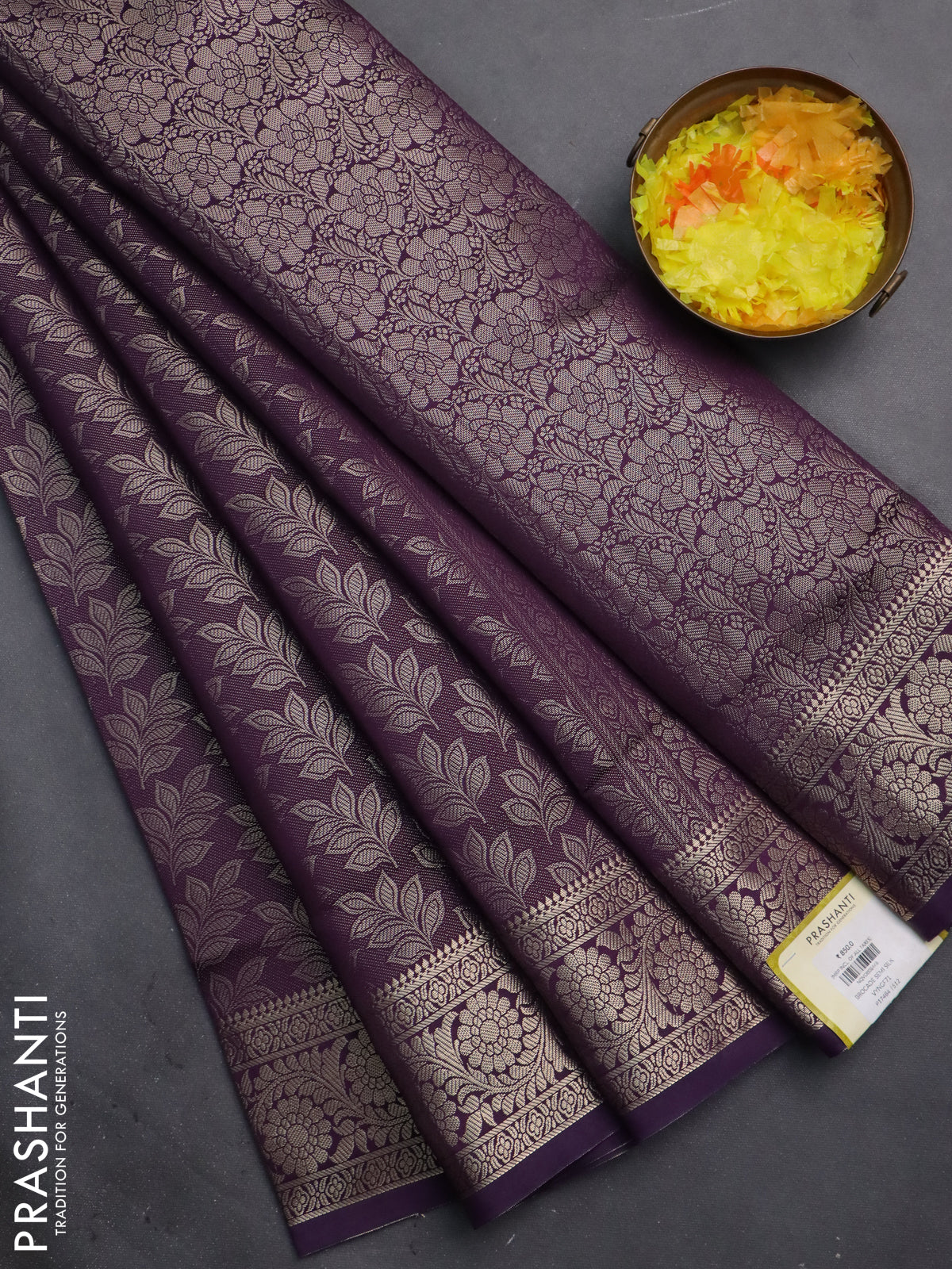 Semi soft silk saree deep purple with allover zari woven brocade weaves -Without blouse