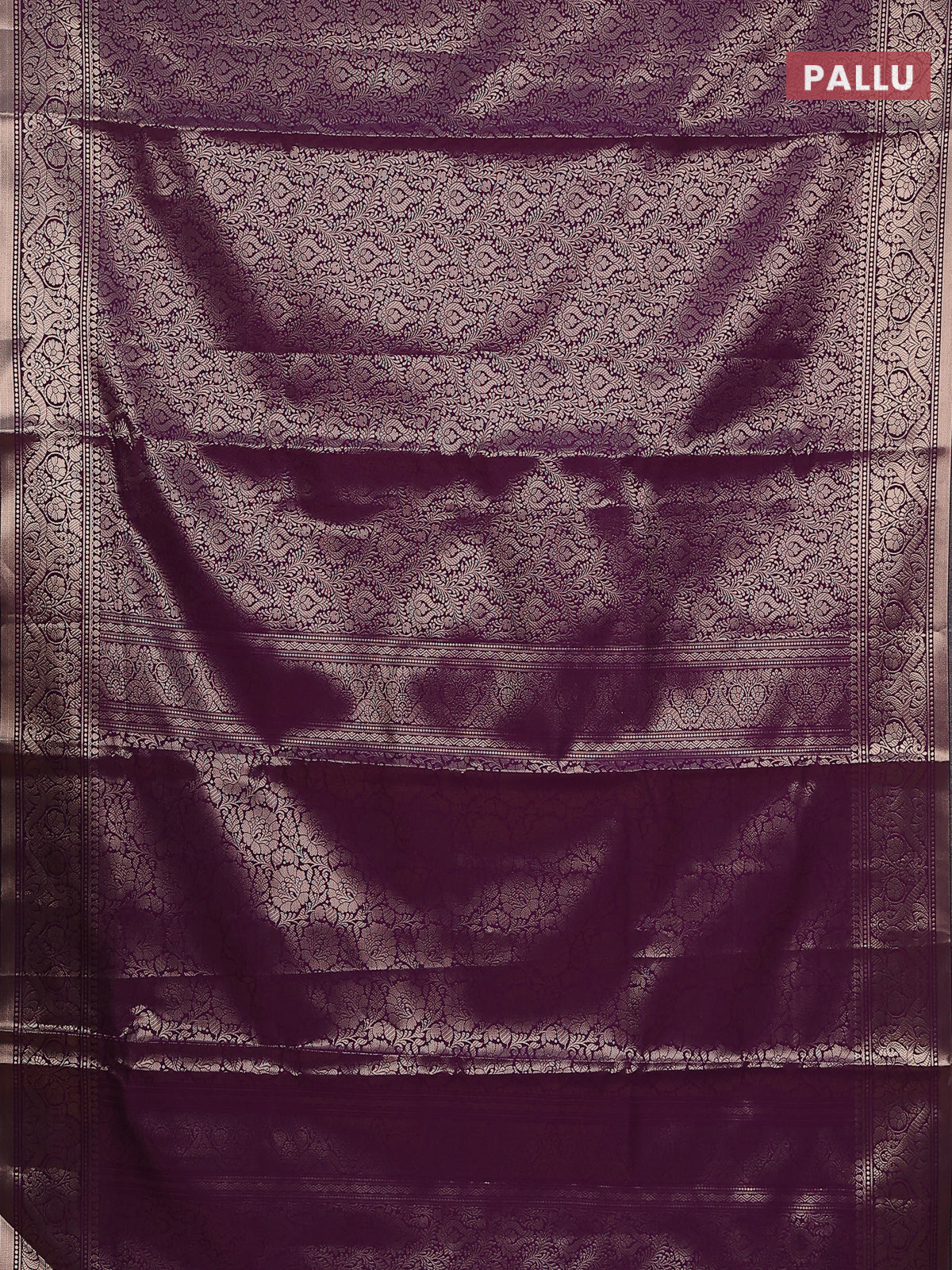 Semi soft silk saree deep purple with allover zari woven brocade weaves -Without blouse