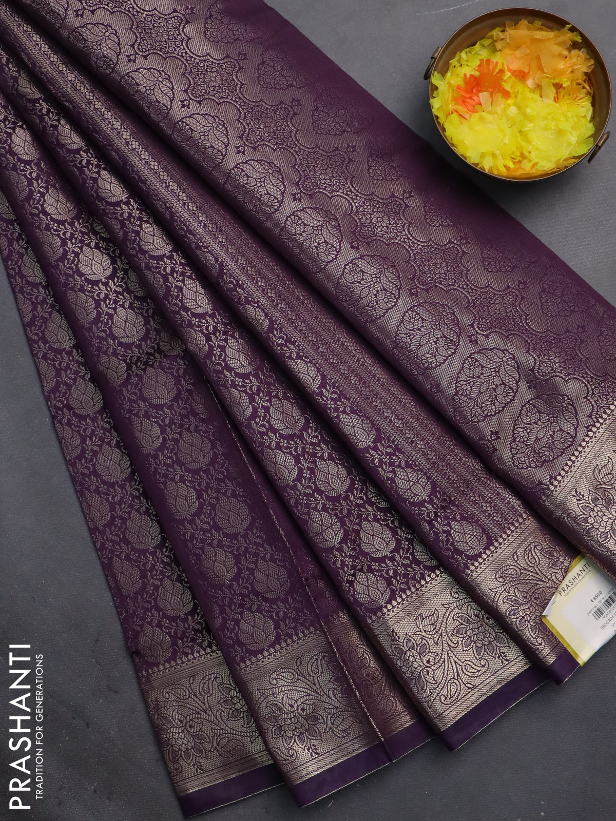 Semi soft silk saree deep purple with allover zari woven brocade weaves -Without blouse