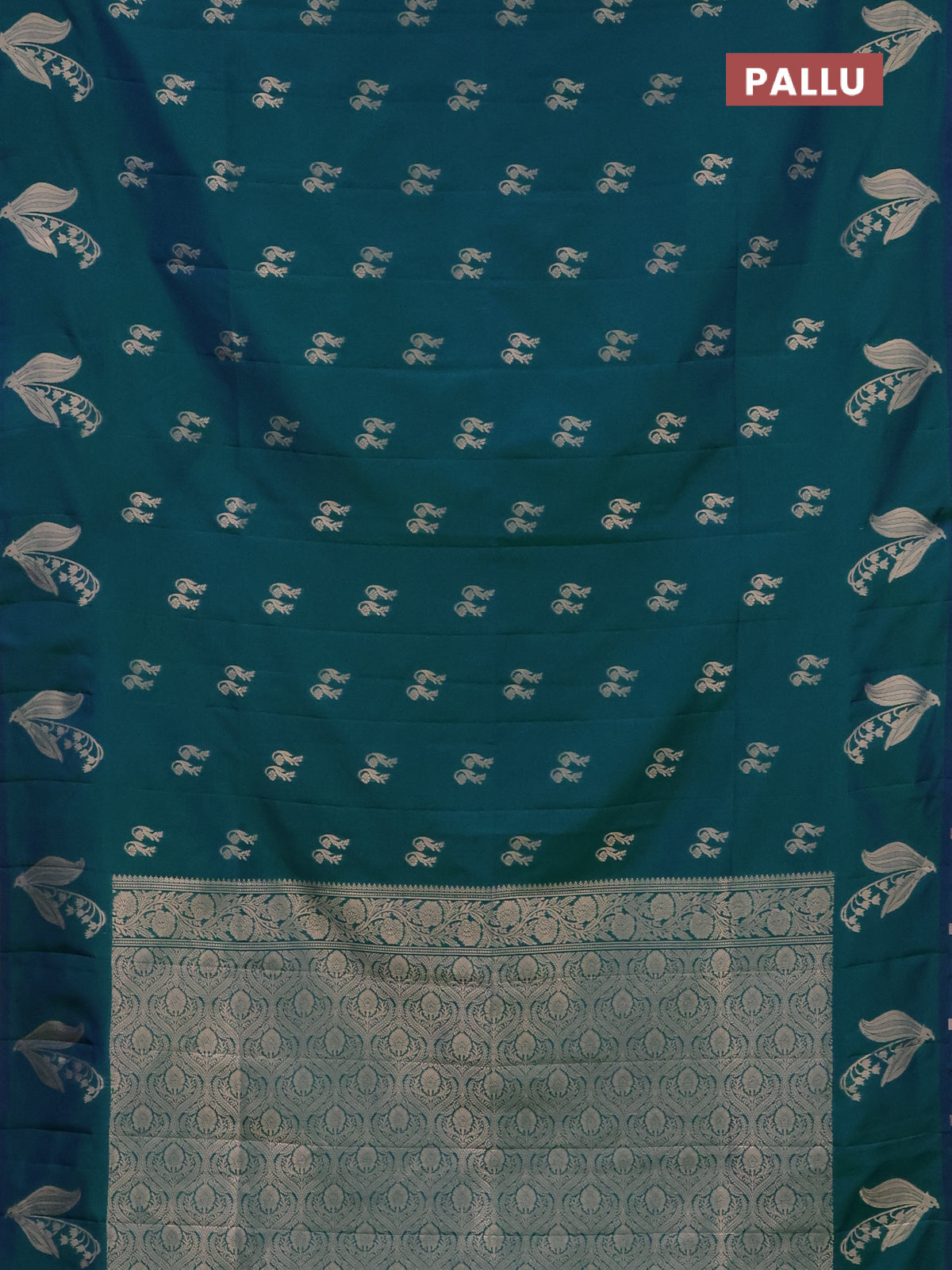 Semi soft silk saree dual shade of bluish green with zari woven buttas and zari woven butta border