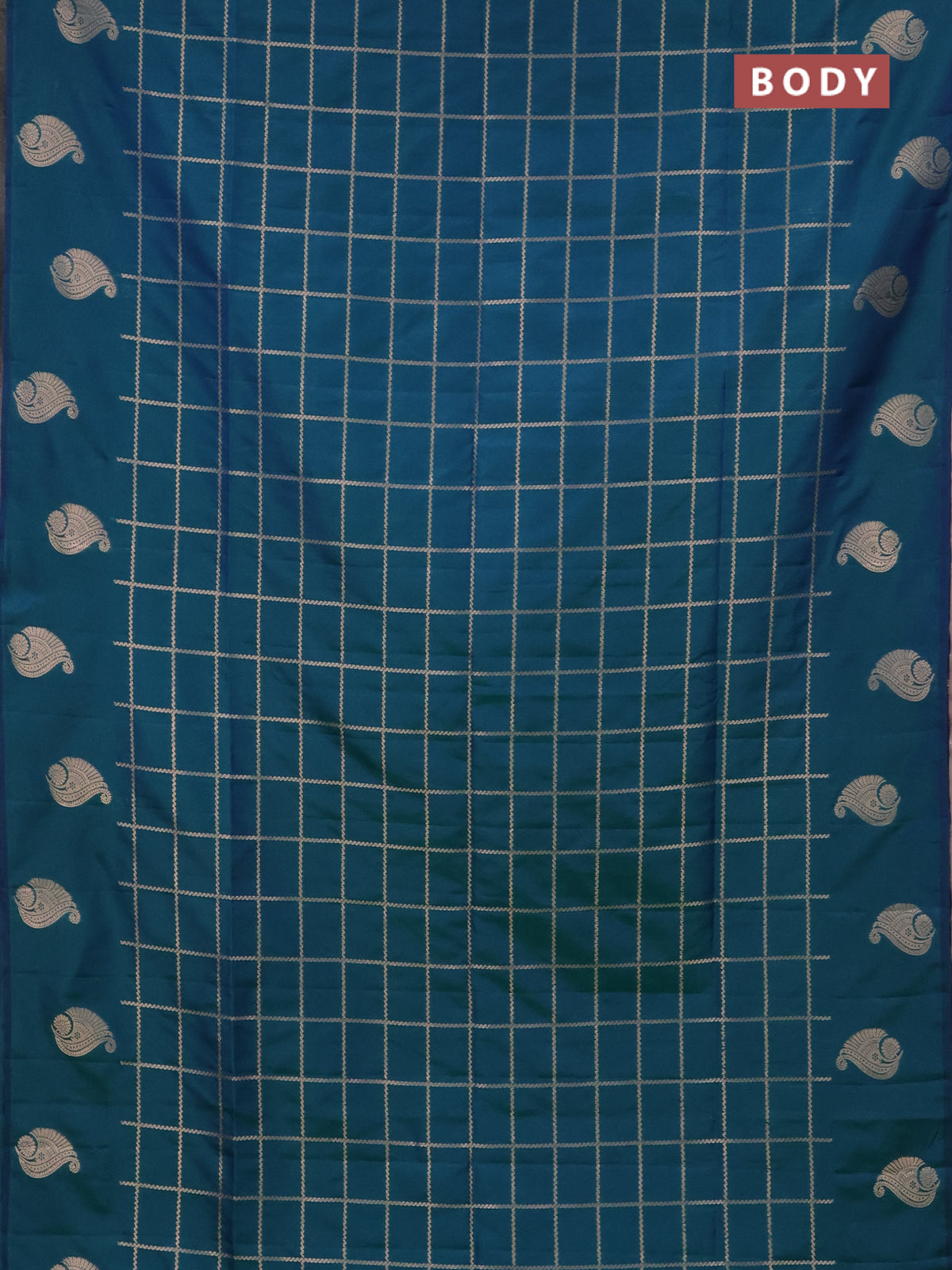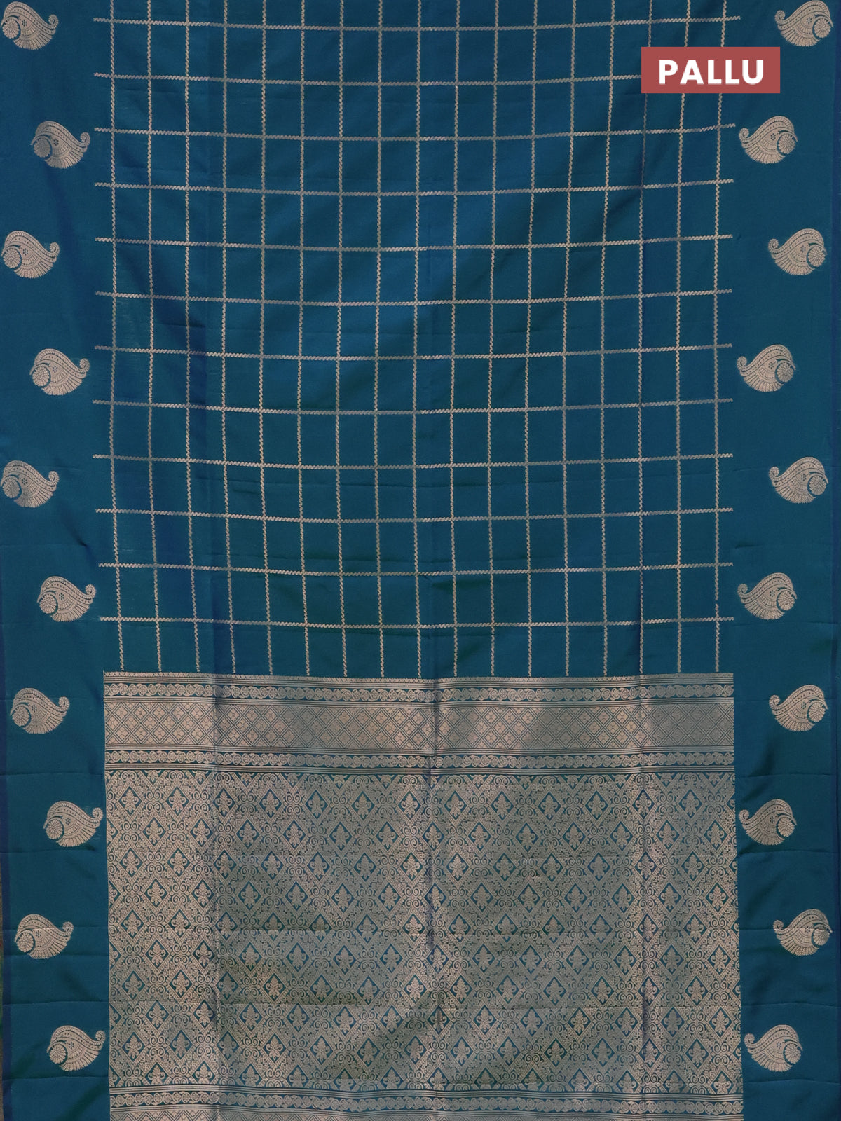 Semi soft silk saree dual shade of greenish blue with allover zari woven checked pattern and zari woven butta border
