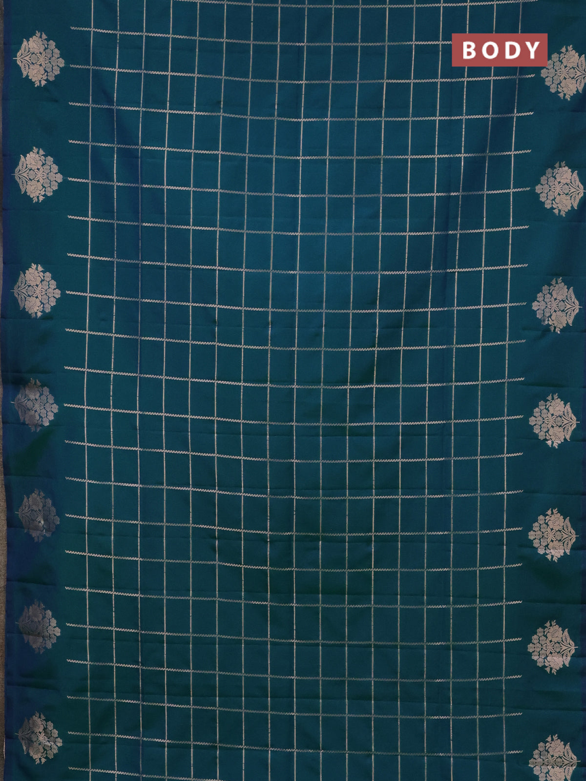 Semi soft silk saree dual shade of greenish blue with allover zari woven checked pattern and zari woven floral butta border