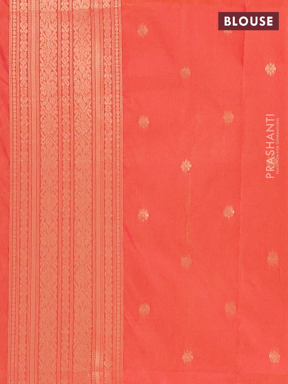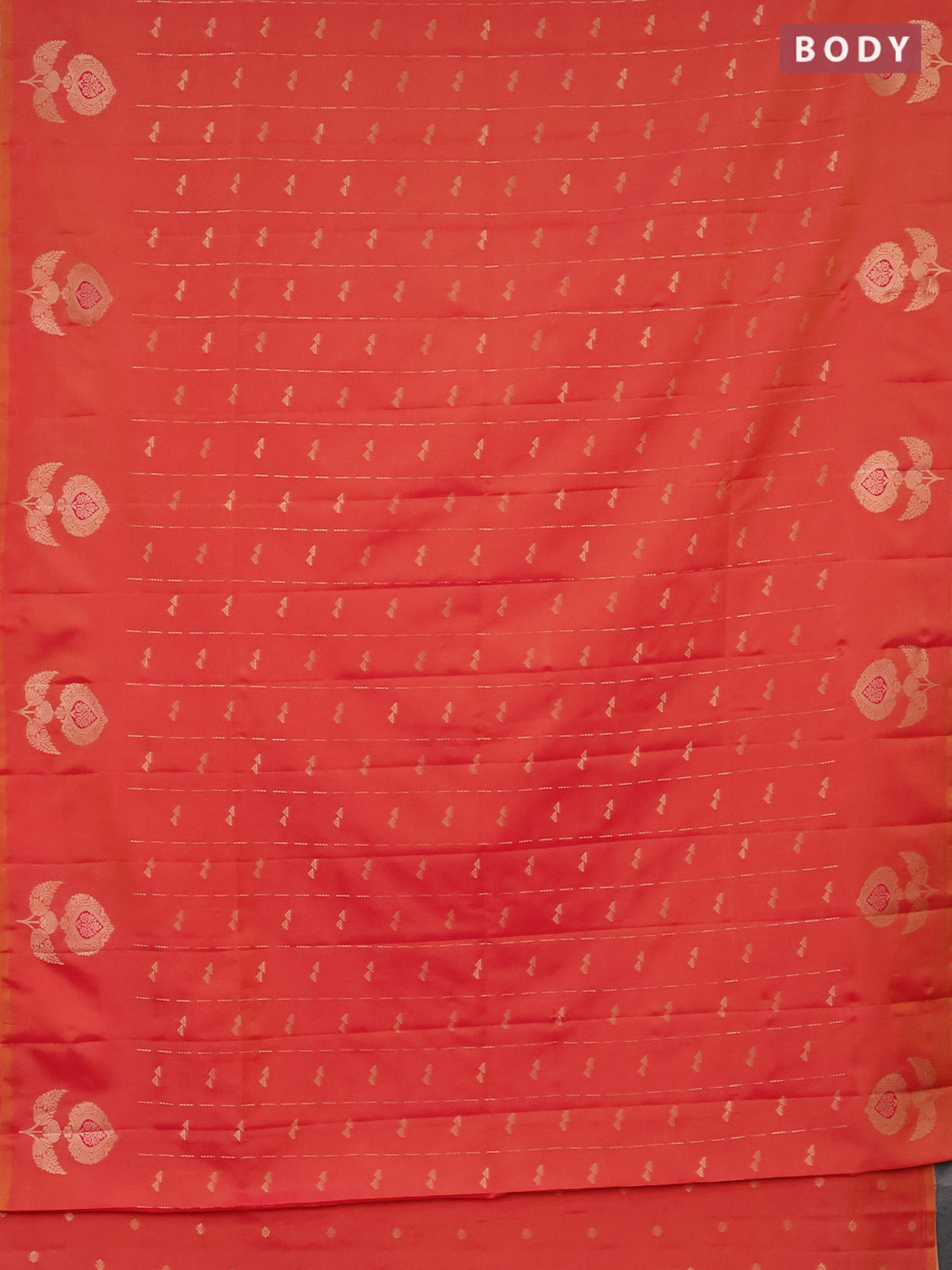 Semi soft silk saree dual shade of pinkish orange with allover zari weaves and zari woven butta border