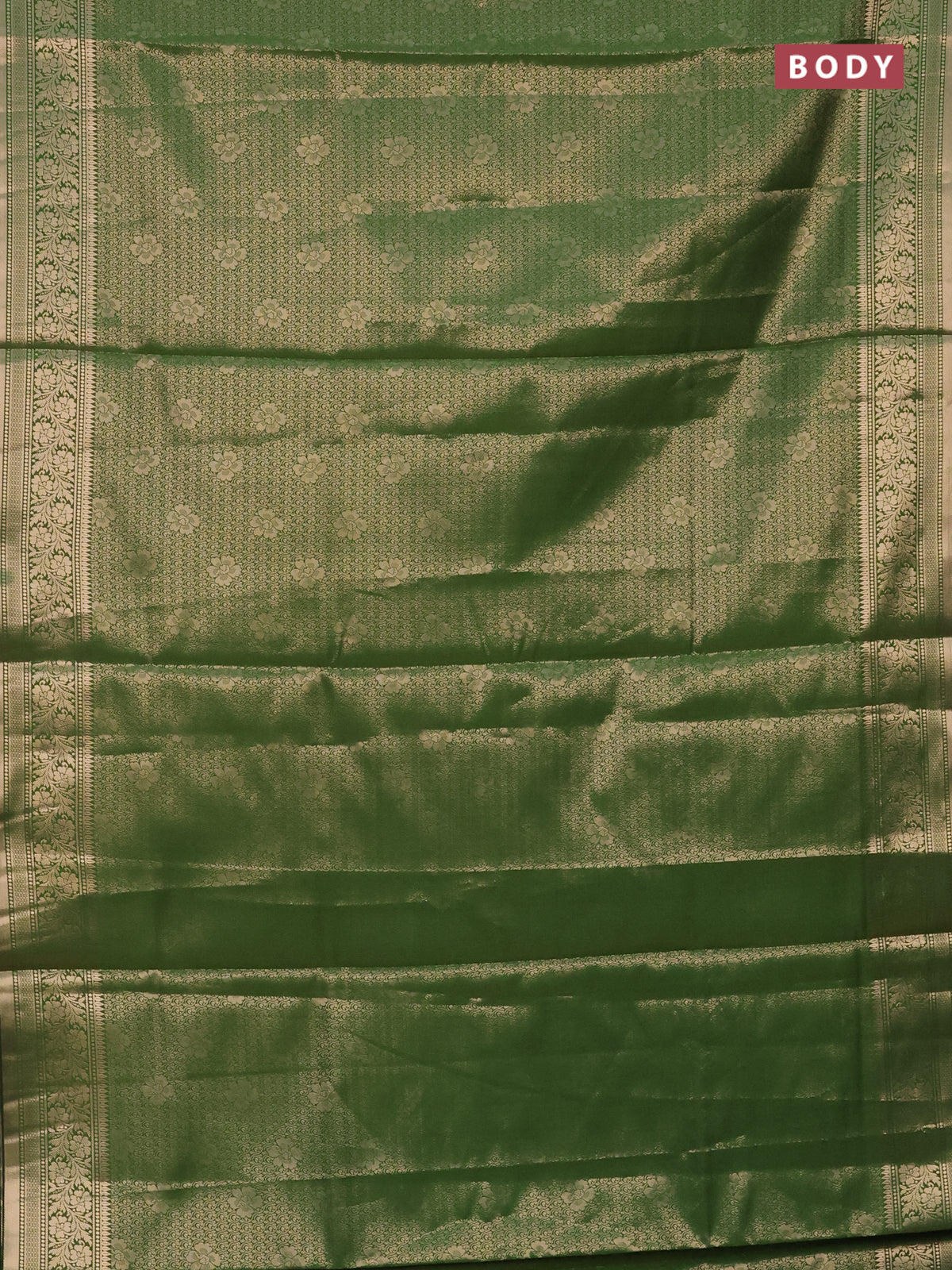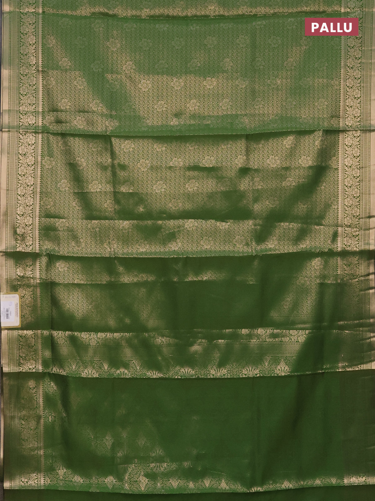 Semi soft silk saree green with allover zari woven brocade weaves -Without blouse