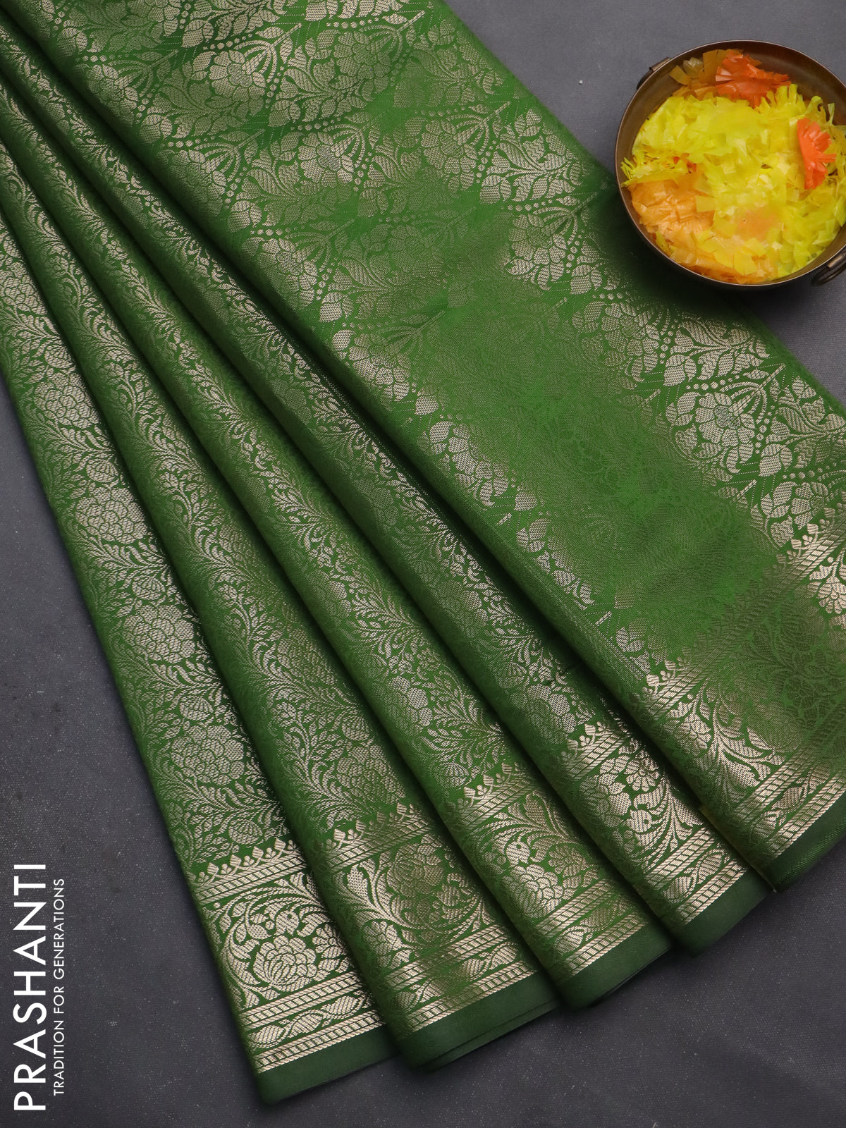 Semi soft silk saree green with allover zari woven brocade weaves -Without blouse