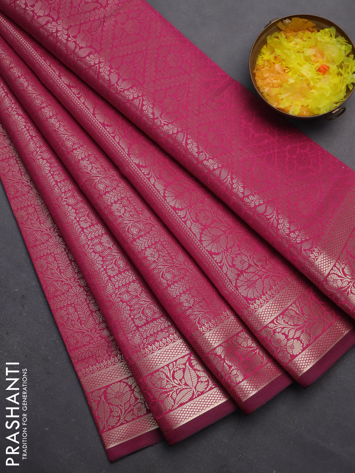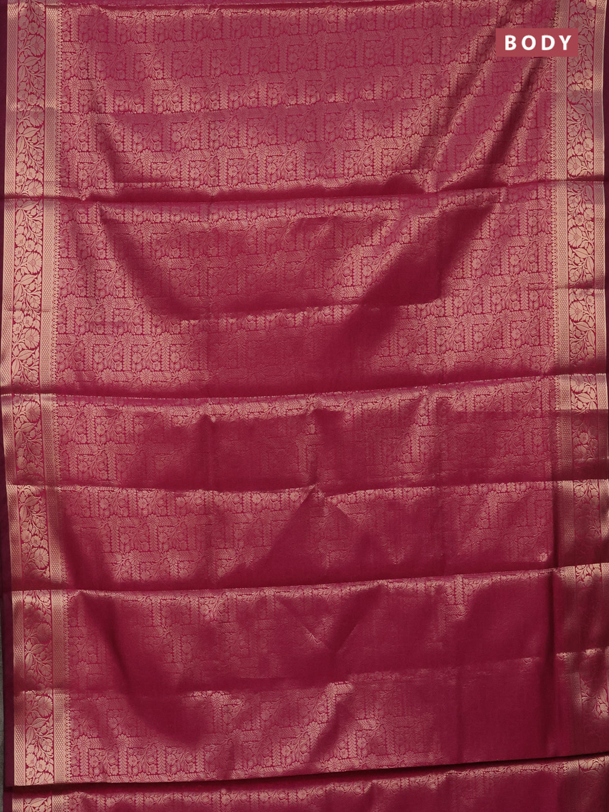 Semi soft silk saree magenta pink with allover zari woven brocade weaves -Without blouse