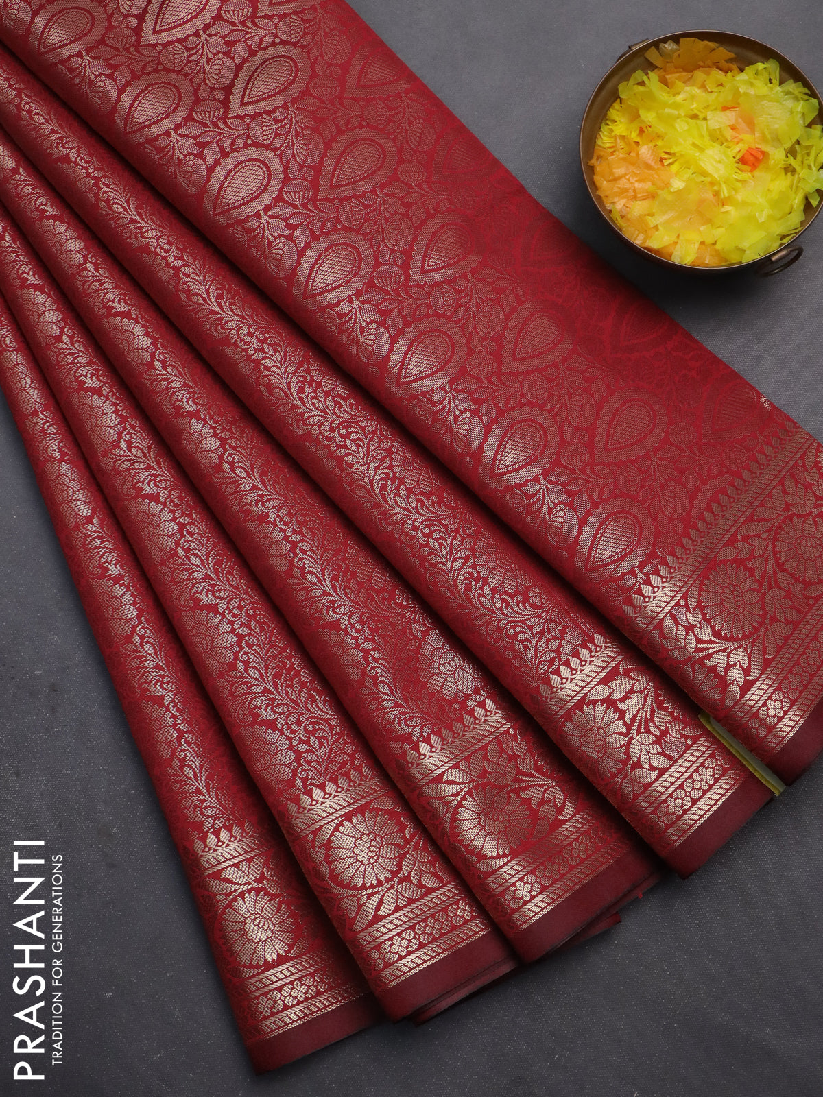 Semi soft silk saree maroon with allover zari woven brocade weaves -Without blouse