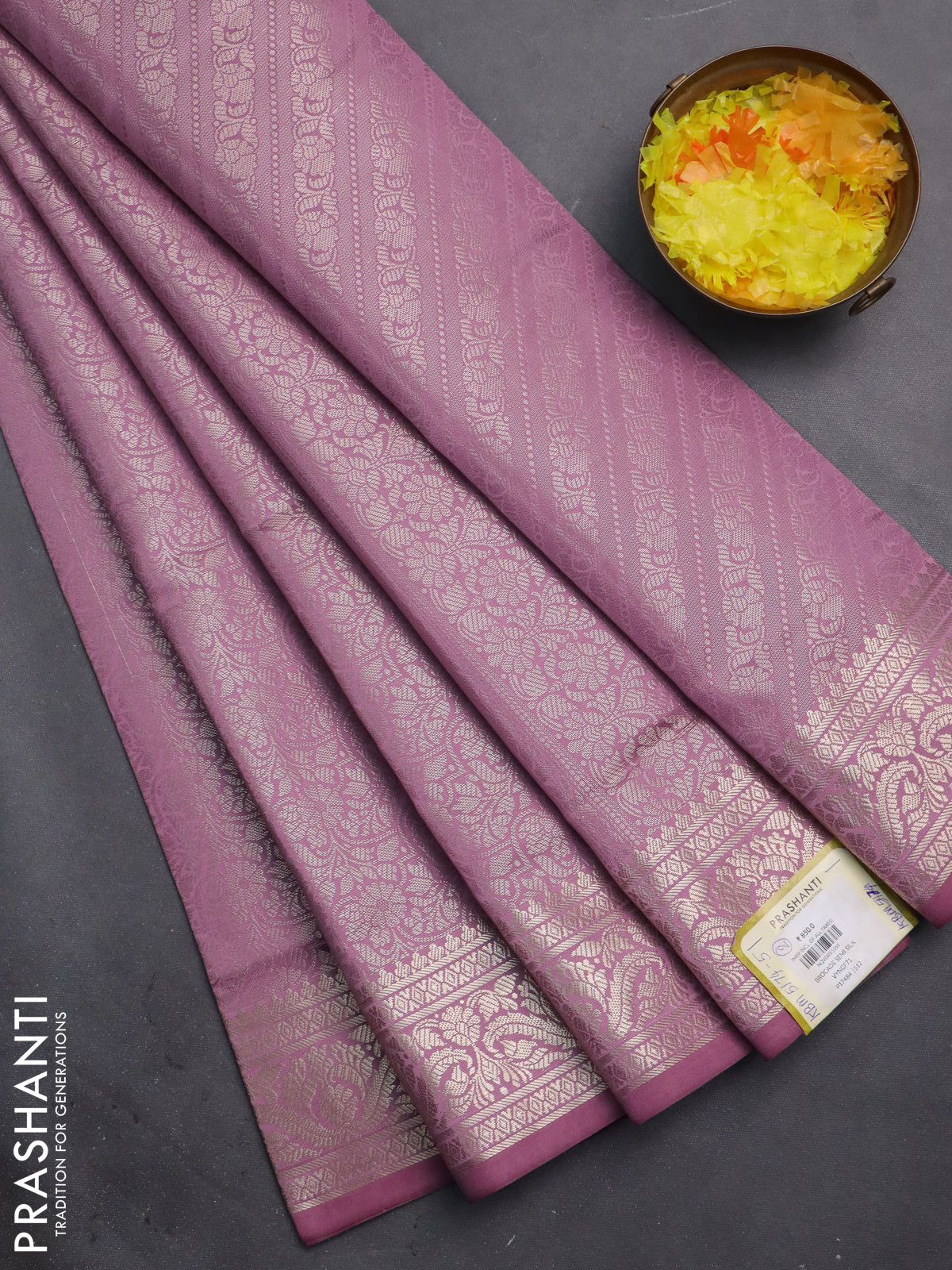 Semi soft silk saree mild purple with allover zari woven brocade weaves -Without blouse