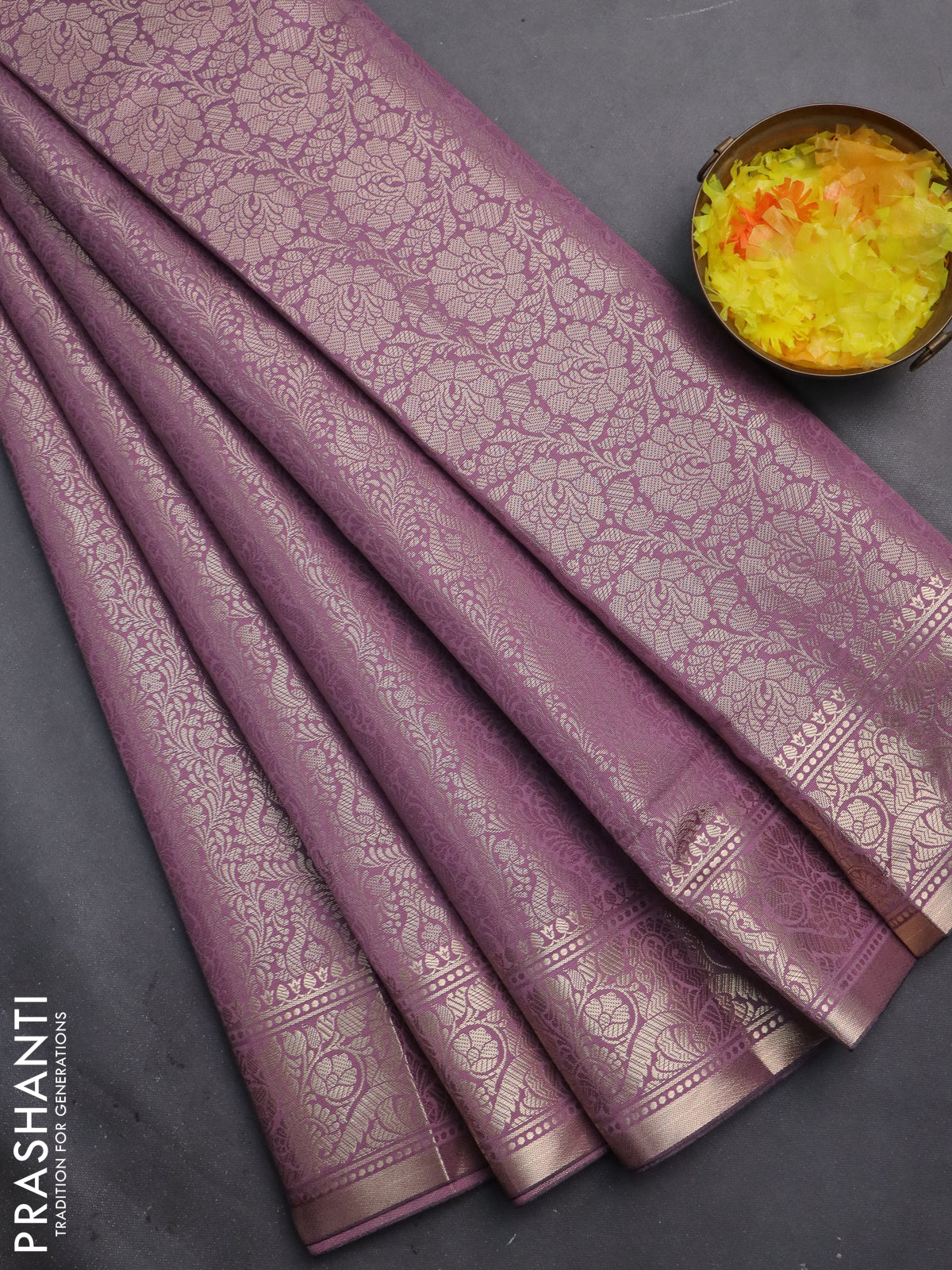 Semi soft silk saree mild purple with allover zari woven brocade weaves -Without blouse