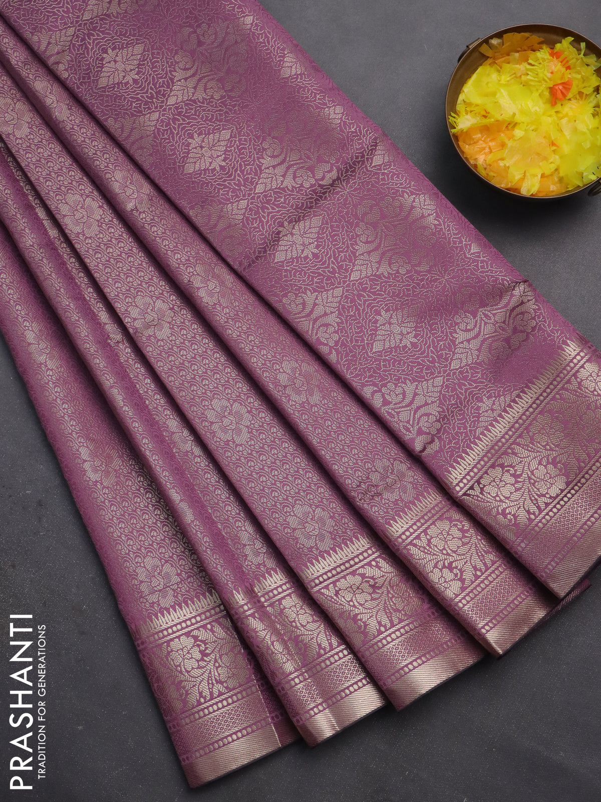 Semi soft silk saree mild purple with allover zari woven brocade weaves -Without blouse