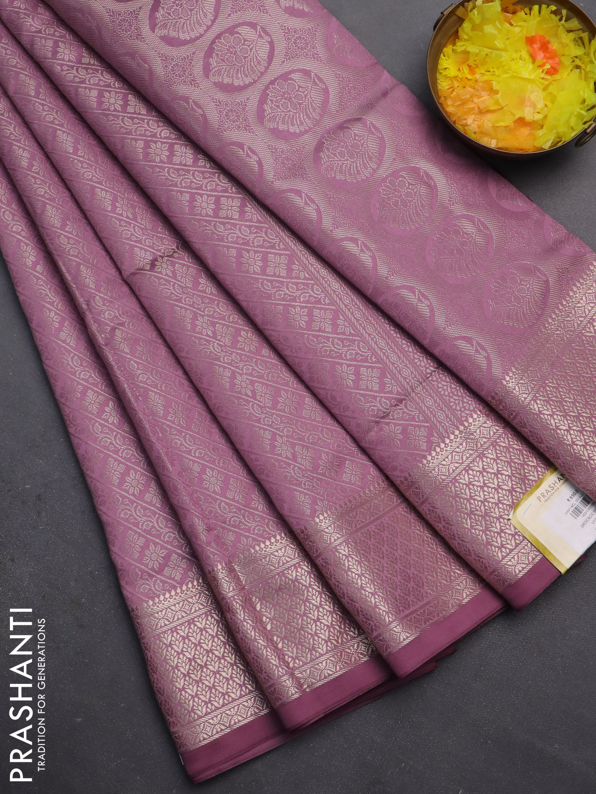 Semi soft silk saree mild purple with allover zari woven brocade weaves -Without blouse