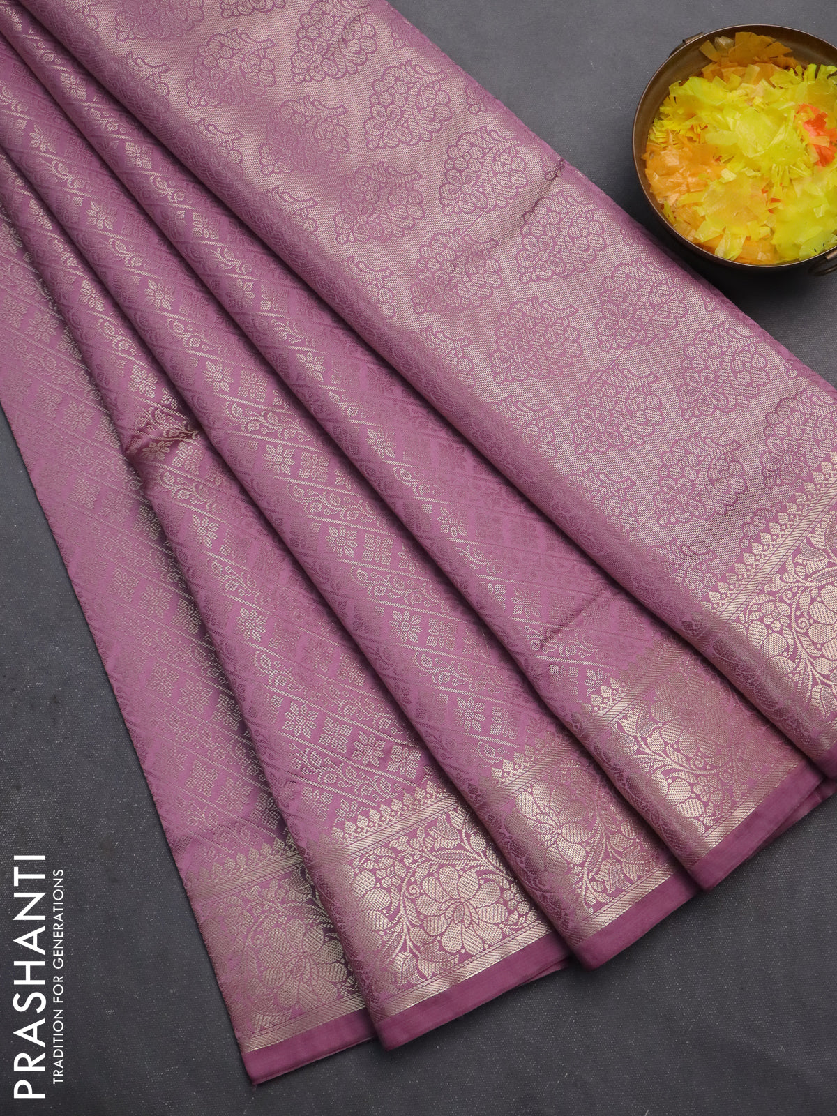 Semi soft silk saree mild purple with allover zari woven brocade weaves -Without blouse