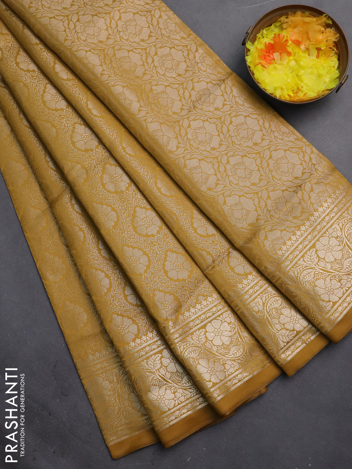 Semi soft silk saree mustard yellow with allover zari woven brocade weaves -Without blouse