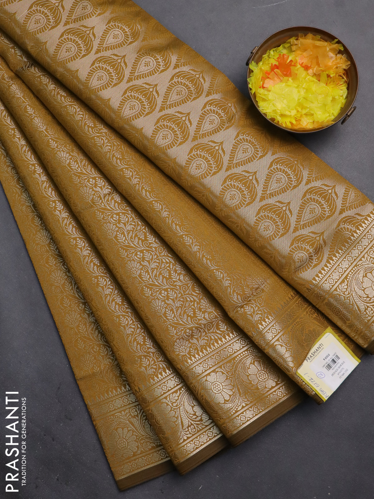 Semi soft silk saree mustard yellow with allover zari woven brocade weaves -Without blouse