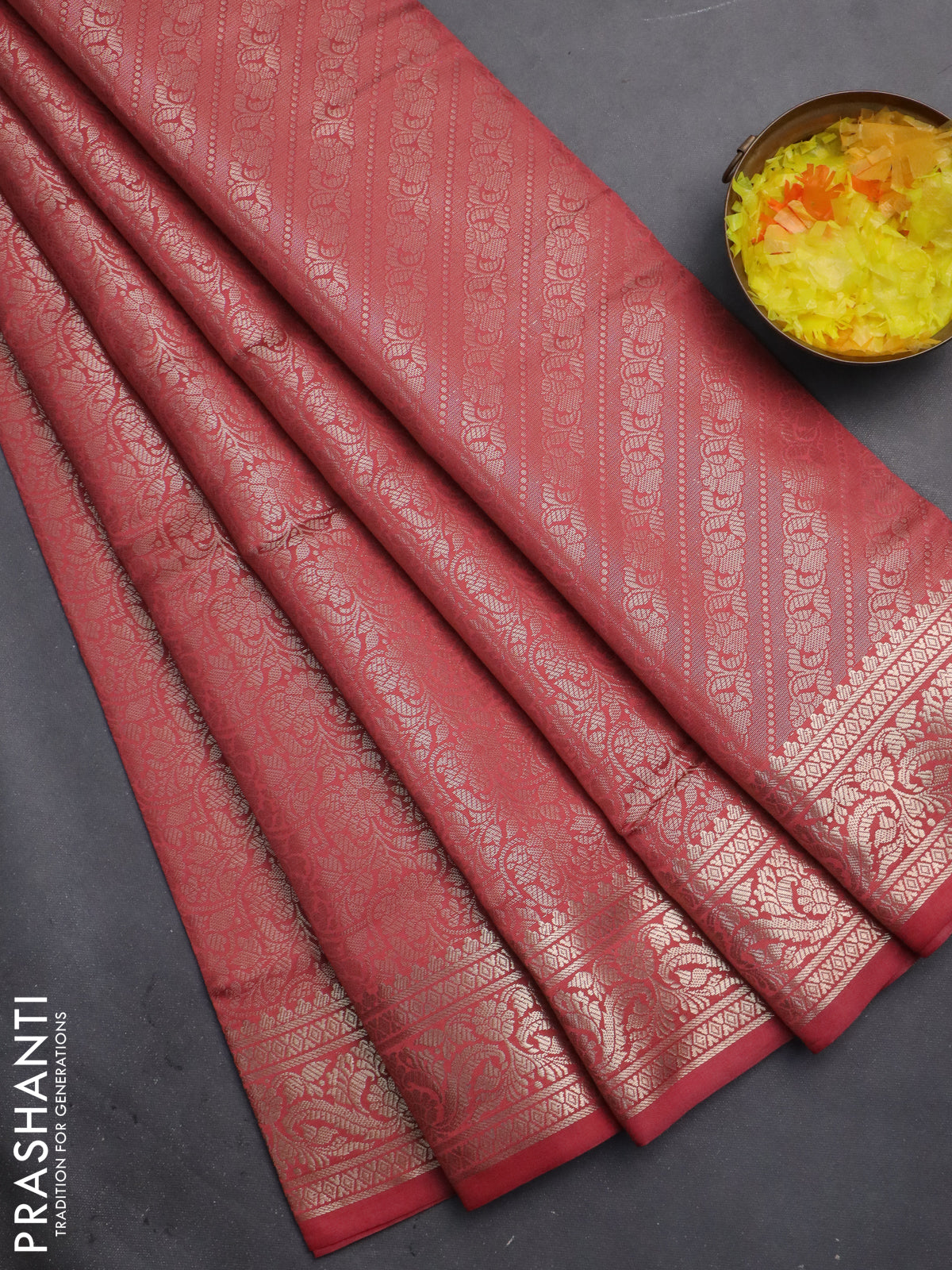 Semi soft silk saree peach orange with allover zari woven brocade weaves -Without blouse