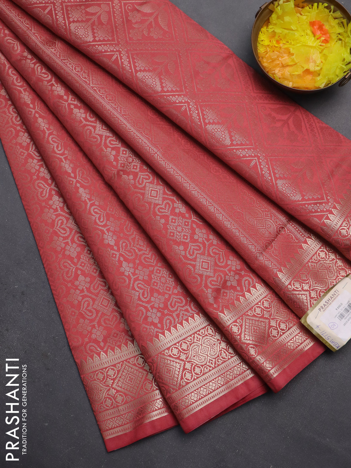 Semi soft silk saree peach pink with allover zari woven brocade weaves -Without blouse