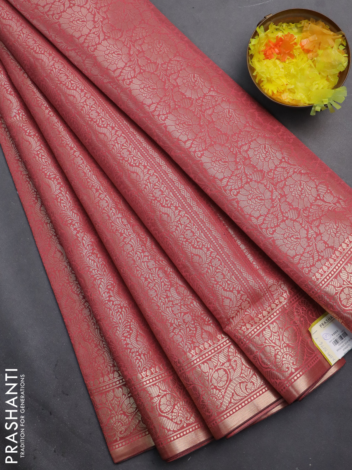 Semi soft silk saree peach pink with allover zari woven brocade weaves -Without blouse