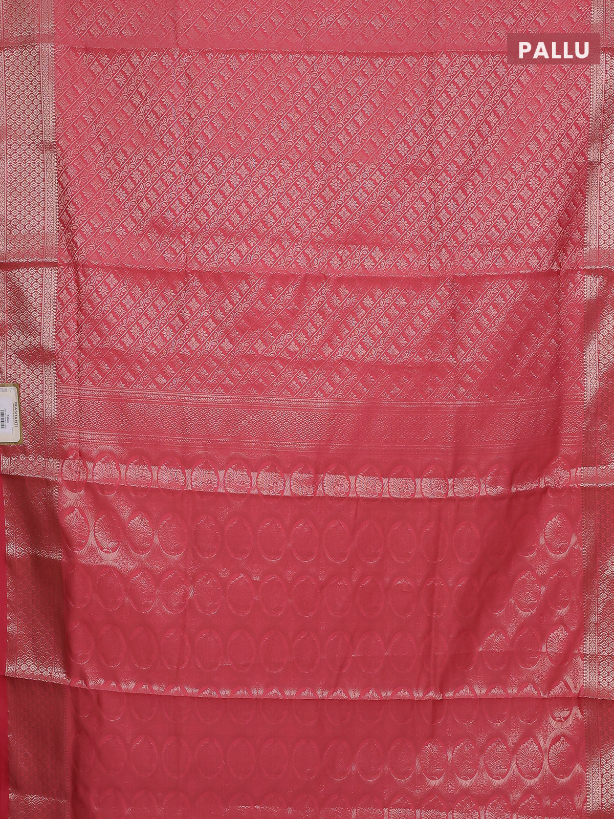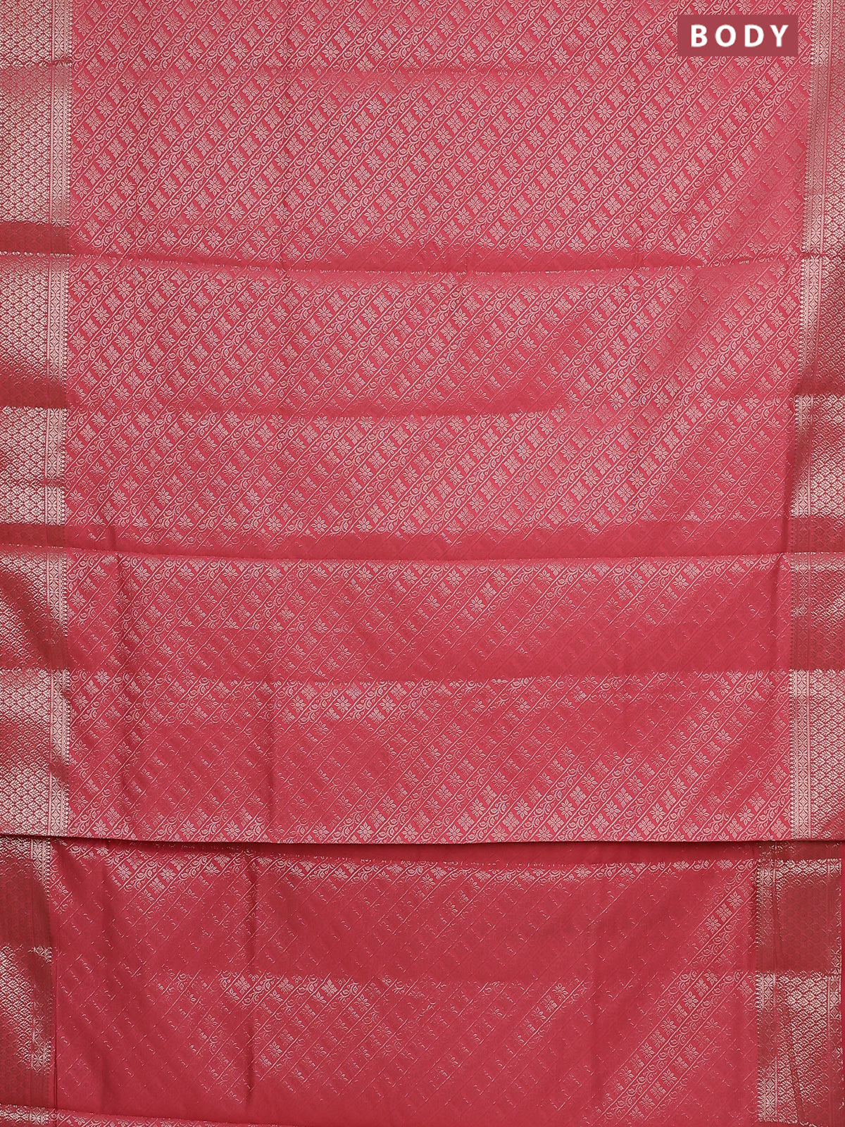 Semi soft silk saree peach pink with allover zari woven brocade weaves -Without blouse
