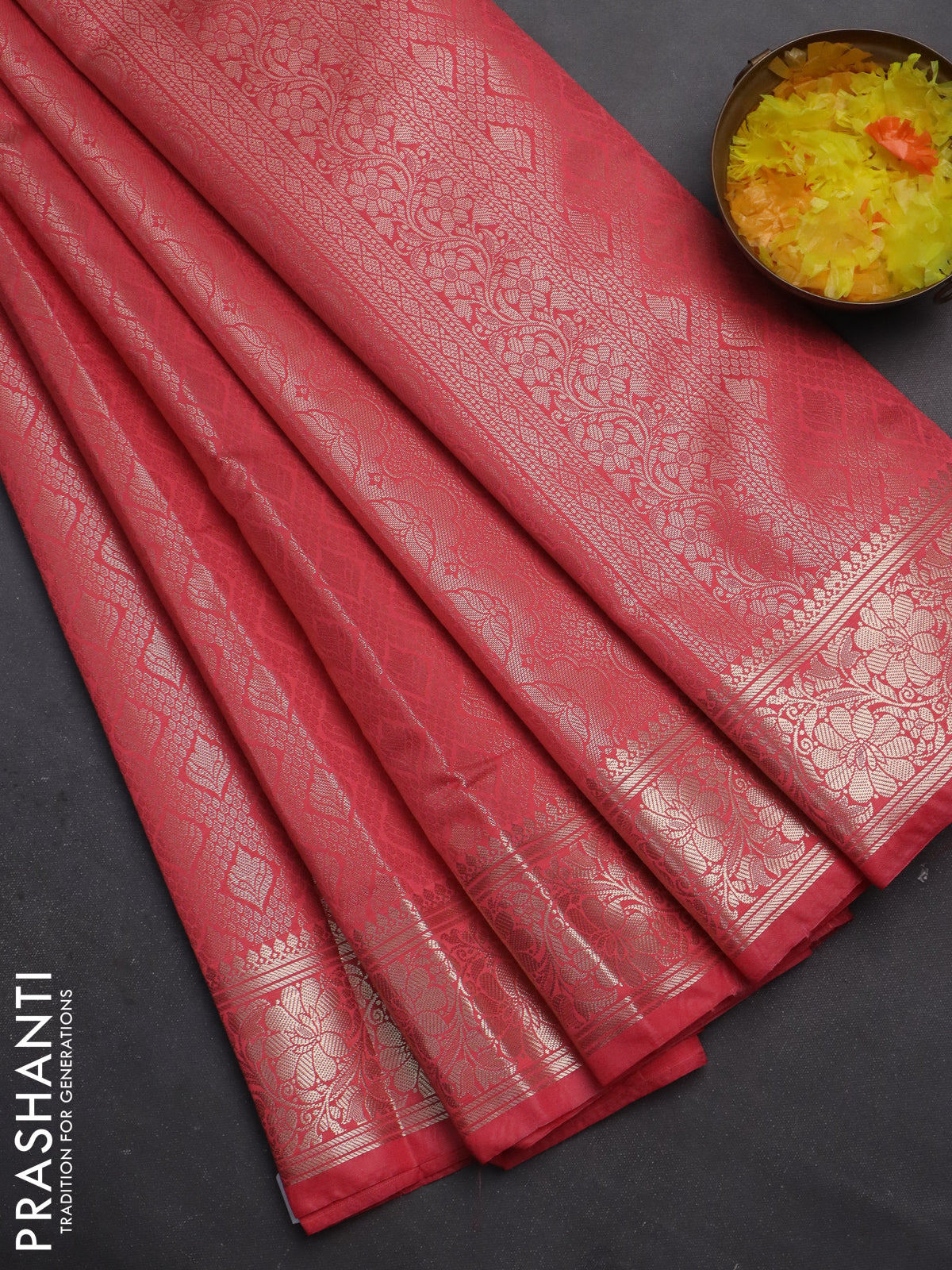 Semi soft silk saree peach pink with allover zari woven brocade weaves -Without blouse