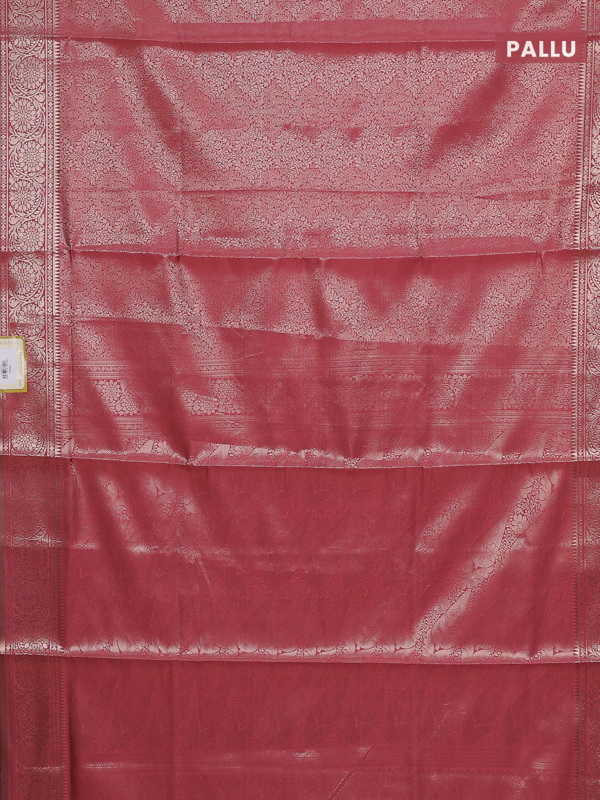 Semi soft silk saree peach shade with allover zari woven brocade weaves -Without blouse