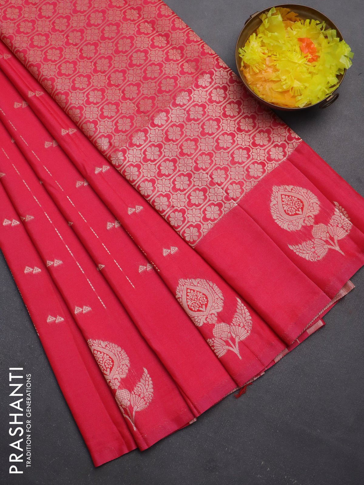 Semi soft silk saree pink with allover zari weaves and zari woven butta border
