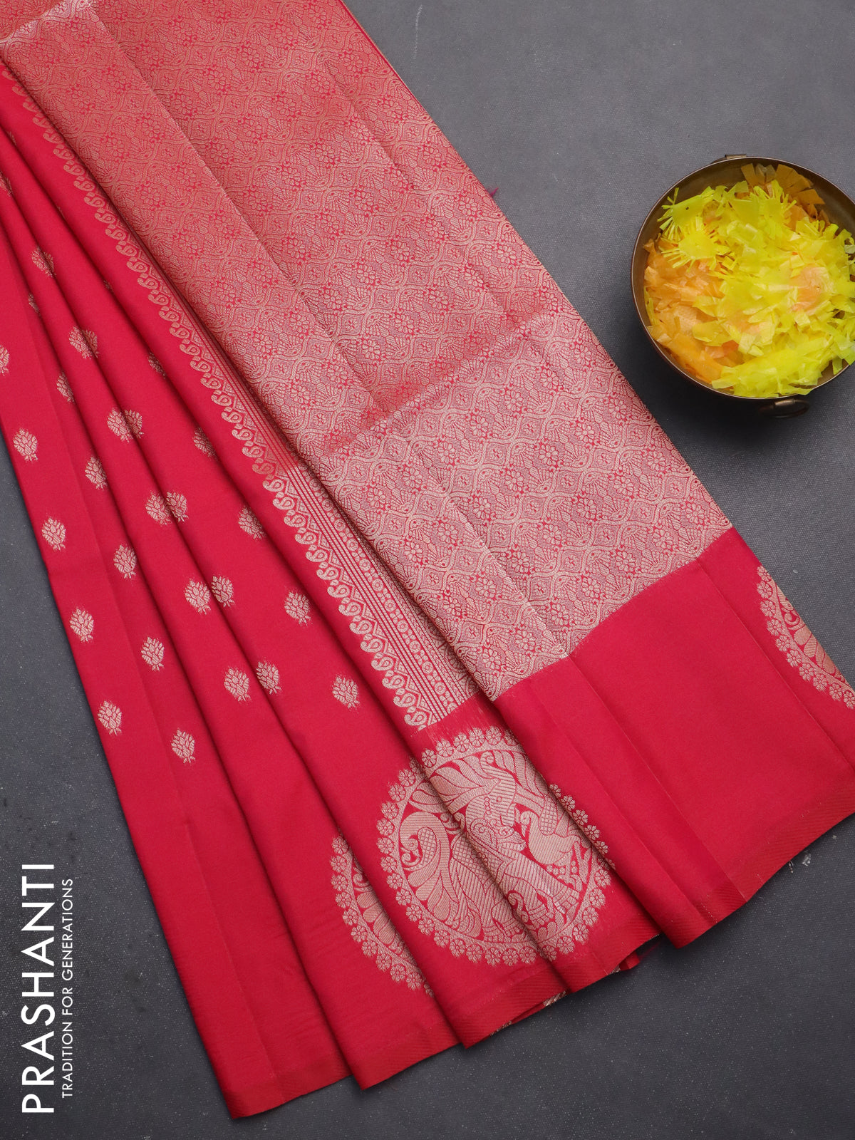 Semi soft silk saree pink with allover zari woven buttas and zari woven butta border