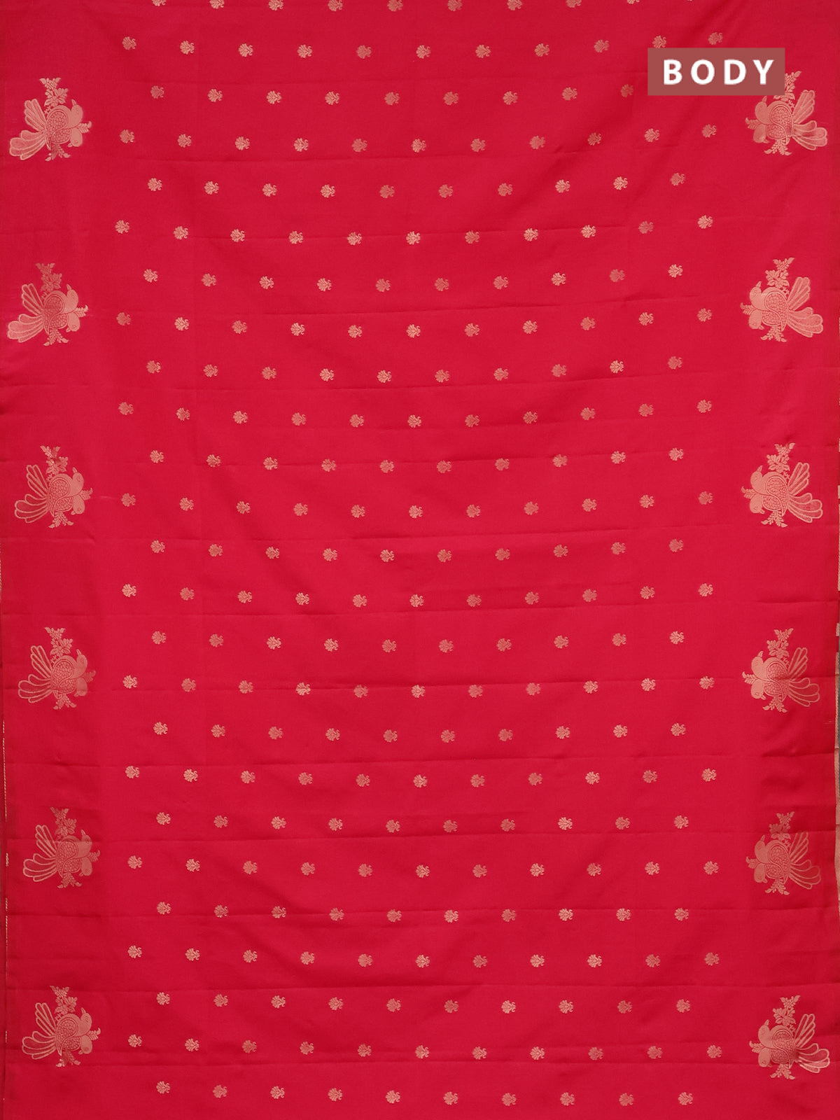 Semi soft silk saree pink with allover zari woven buttas with zari woven bird butta border