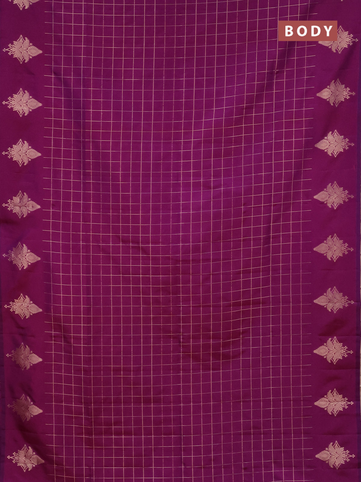 Semi soft silk saree purple with allover zari woven checked pattern and zari woven butta border