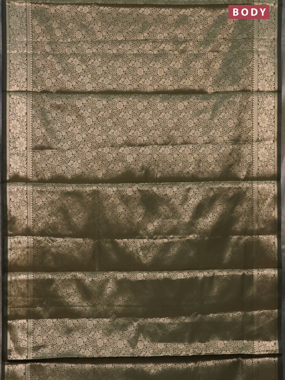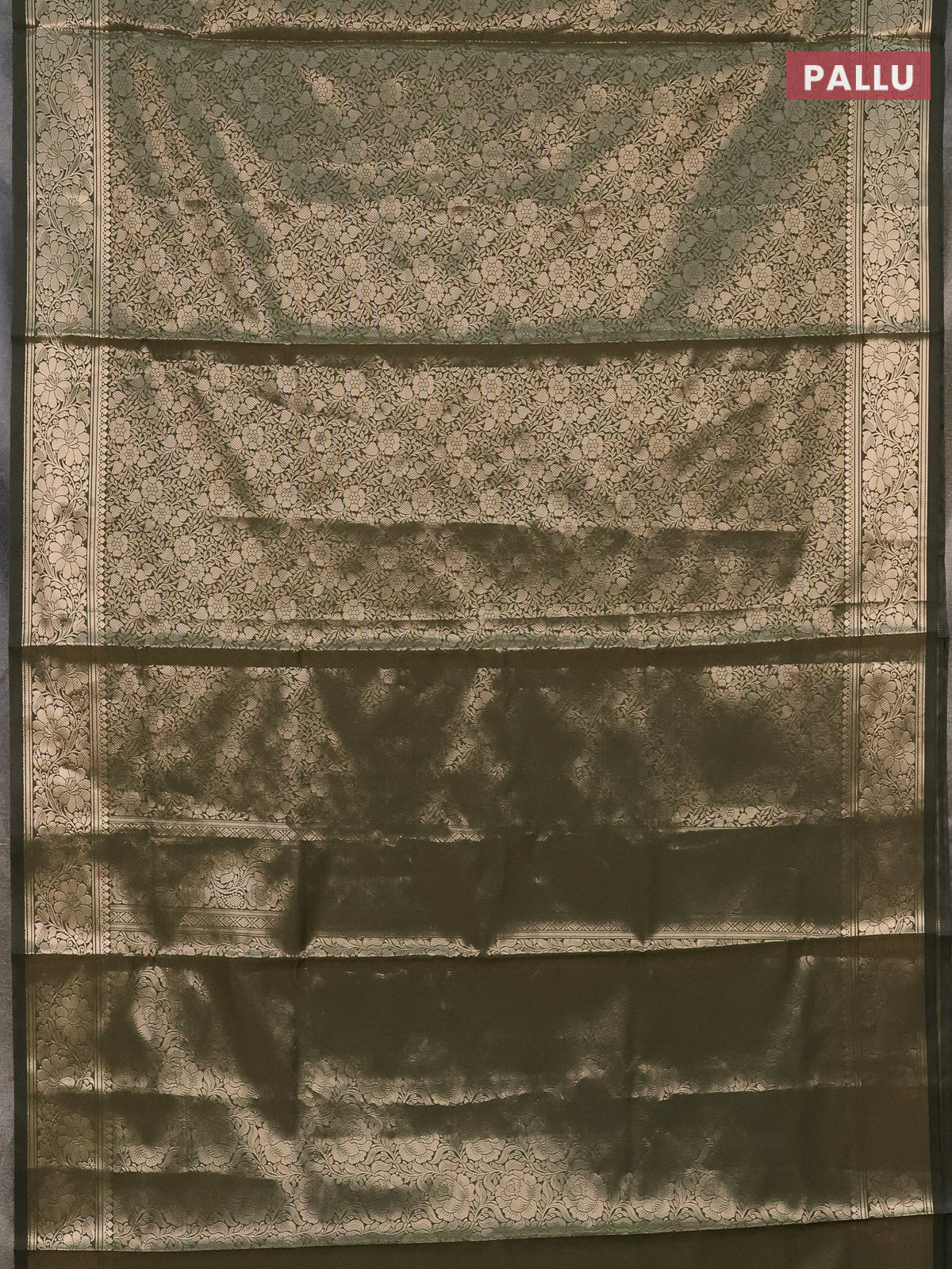 Semi soft silk saree sap green with allover zari woven brocade weaves -Without blouse