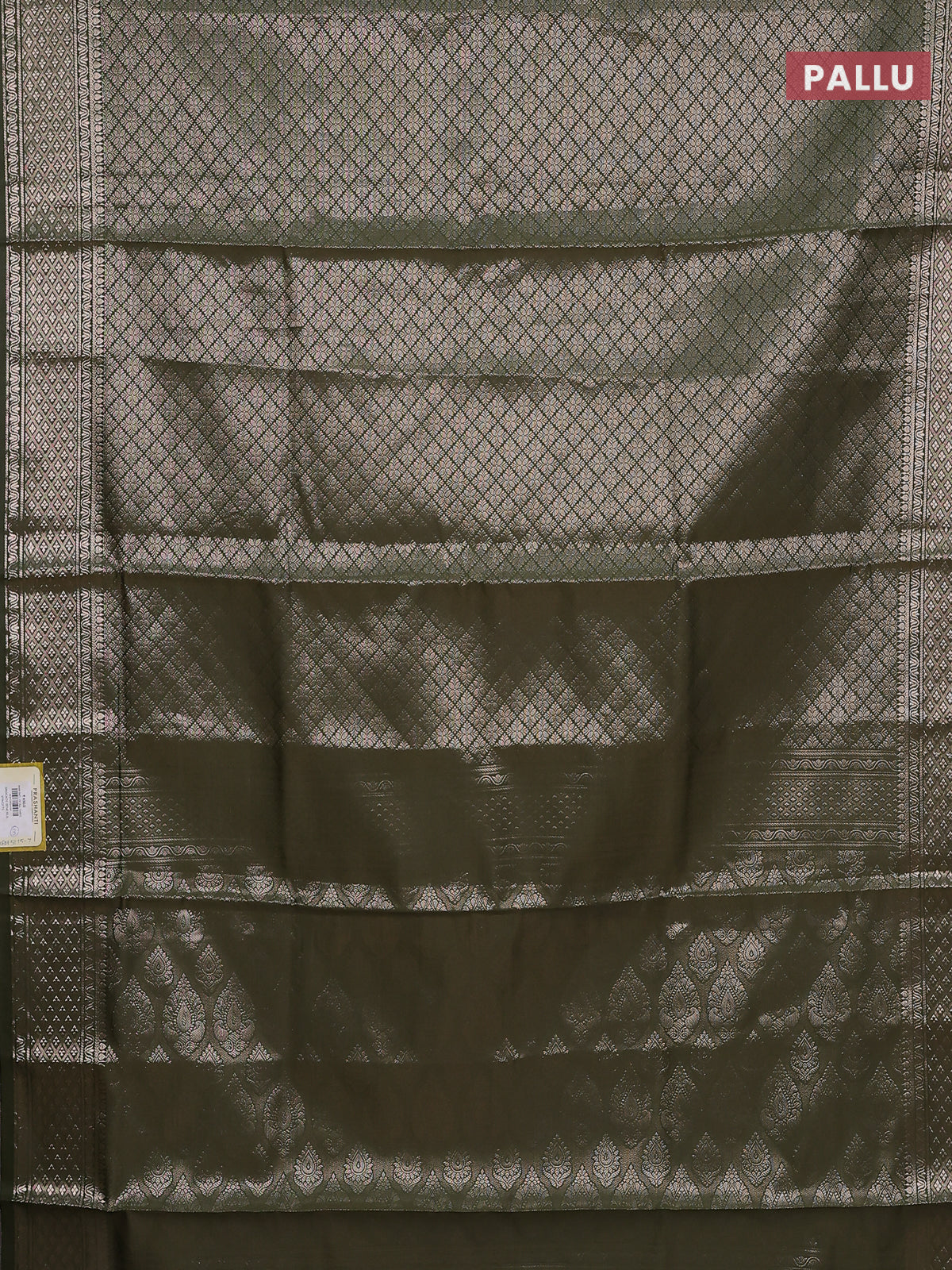 Semi soft silk saree sap green with allover zari woven brocade weaves -Without blouse