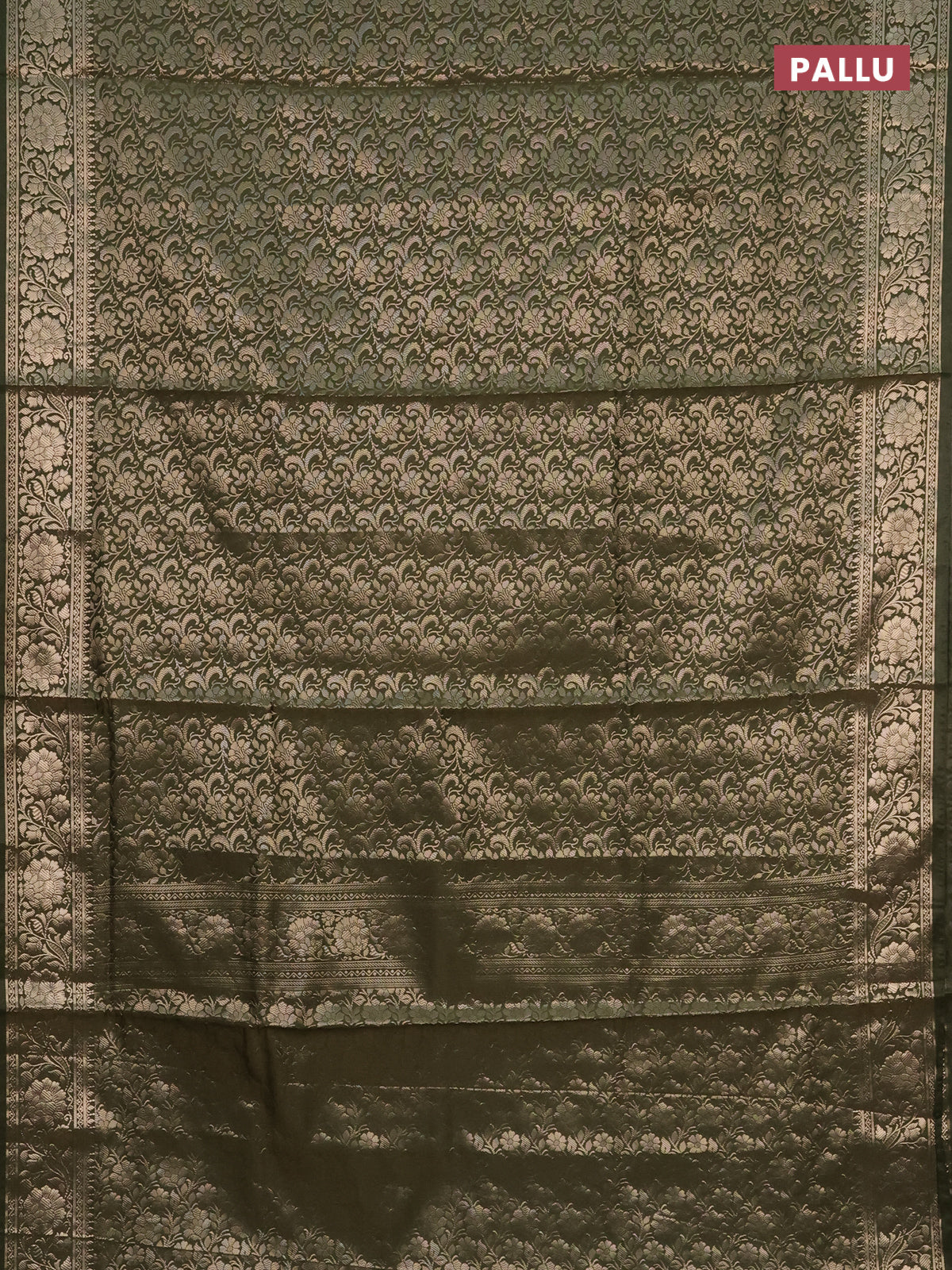 Semi soft silk saree sap green with allover zari woven brocade weaves -Without blouse