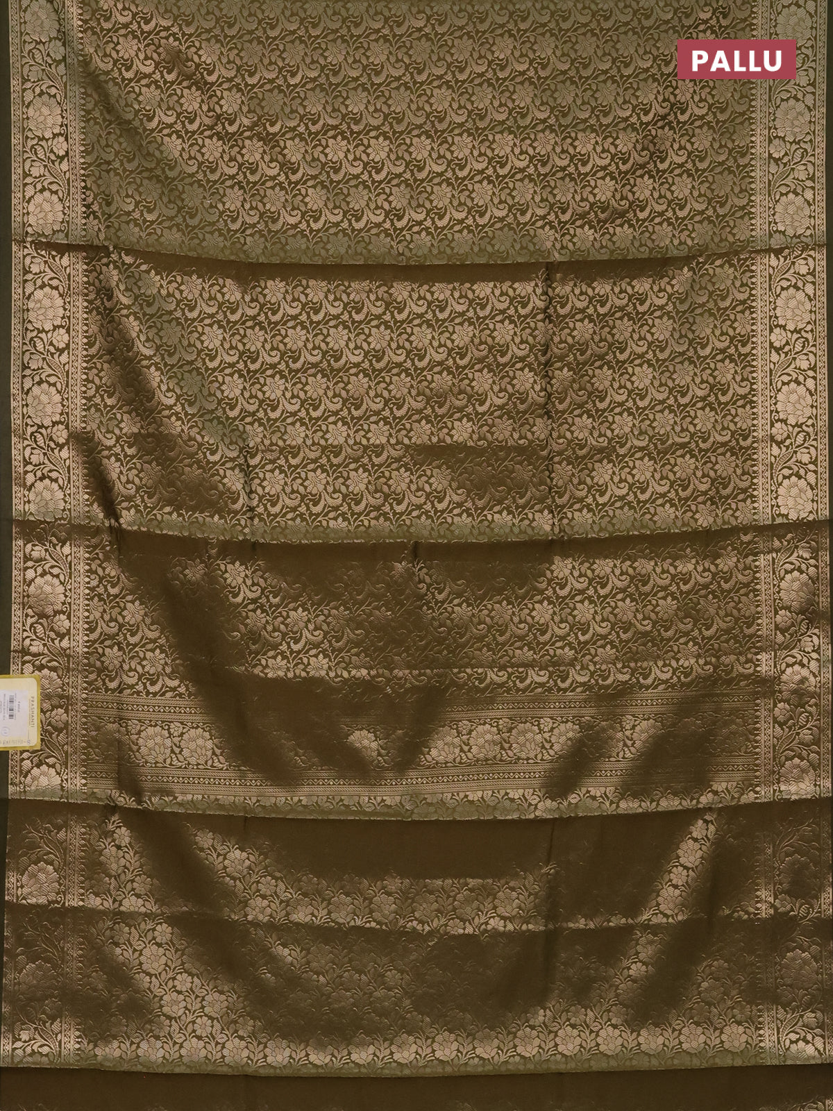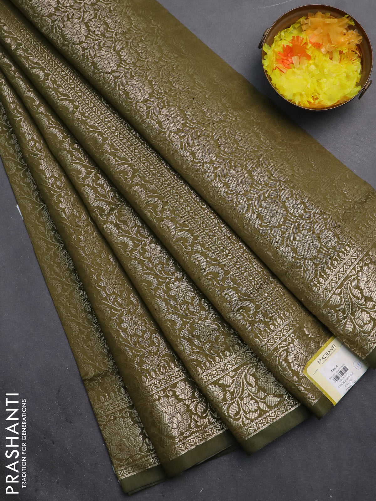 Semi soft silk saree sap green with allover zari woven brocade weaves -Without blouse