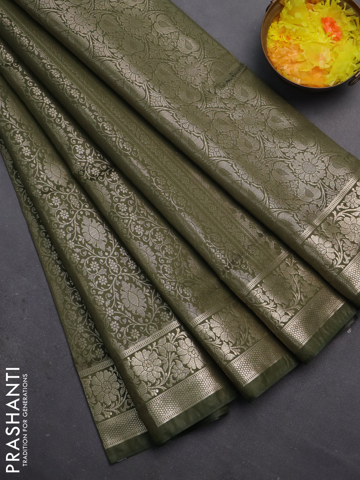 Semi soft silk saree sap green with allover zari woven brocade weaves -Without blouse