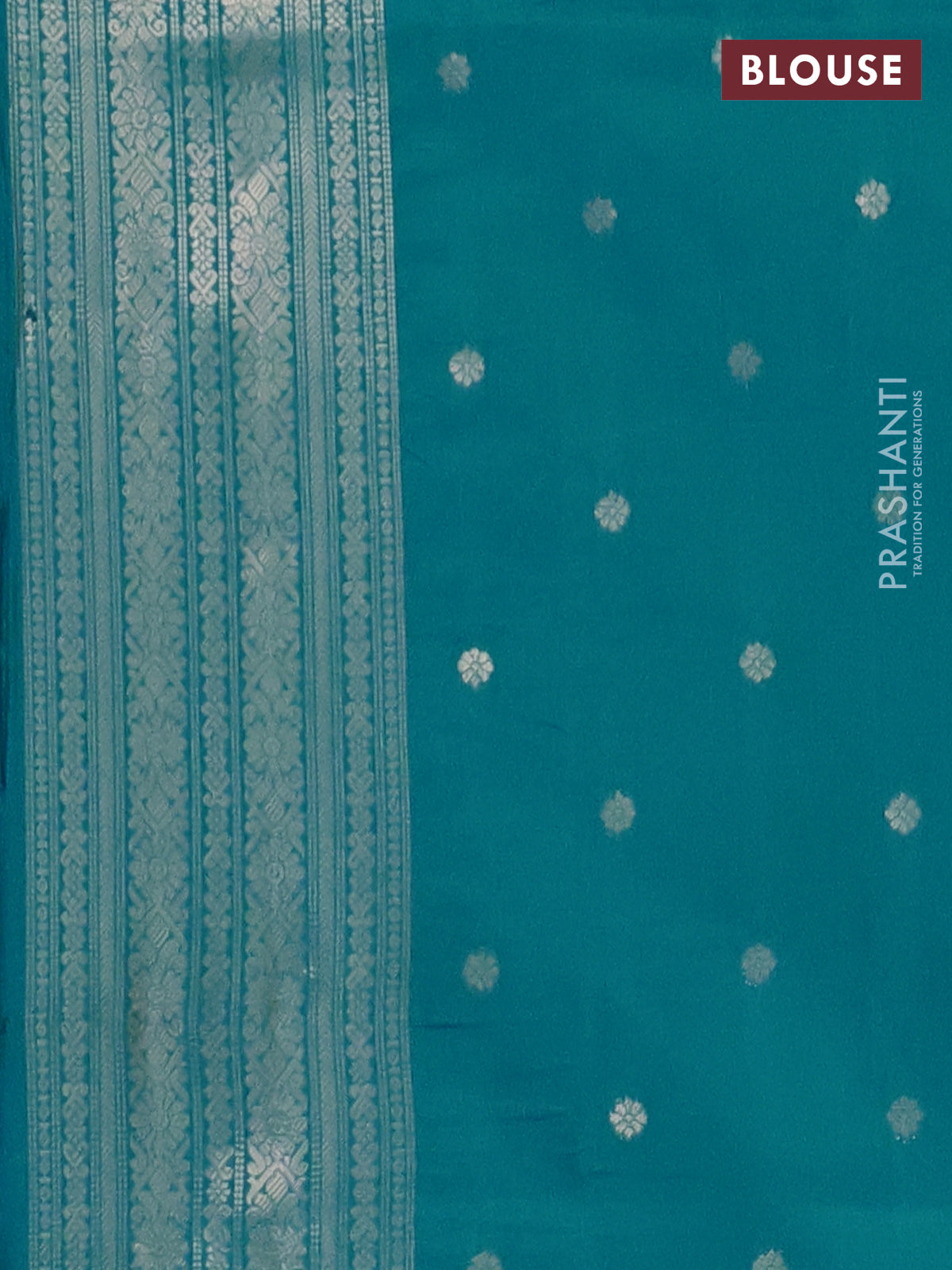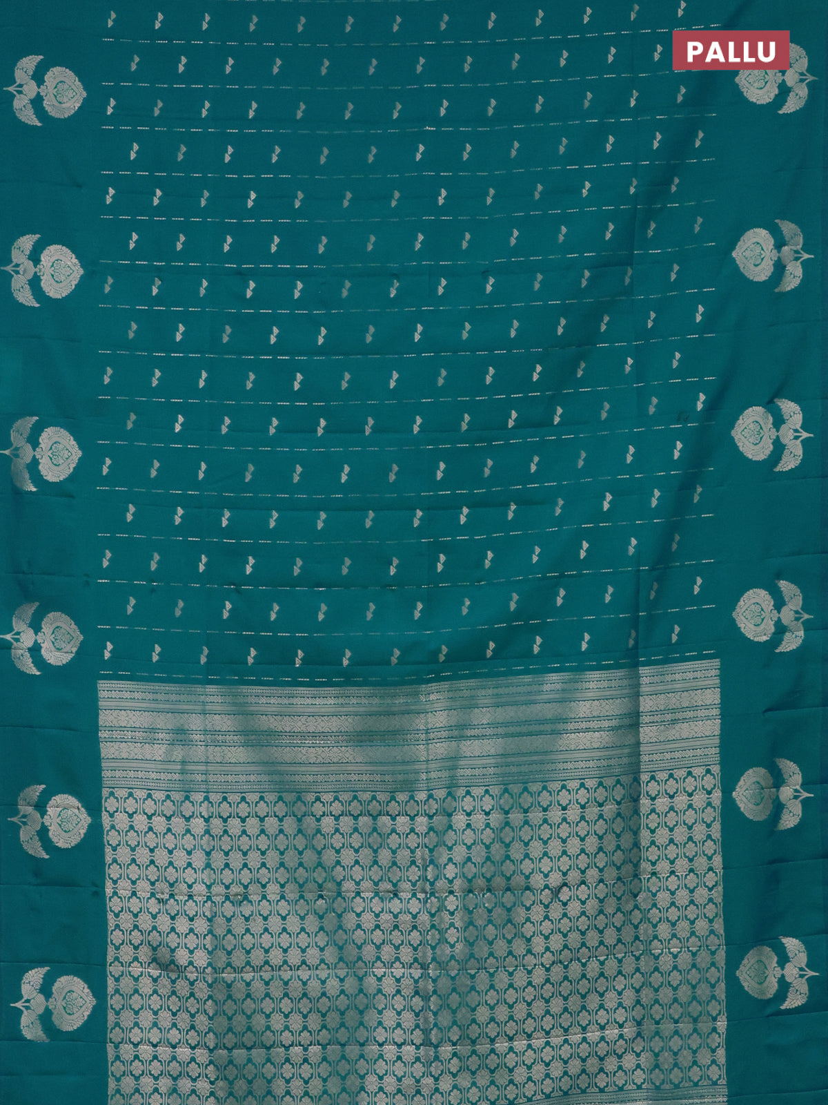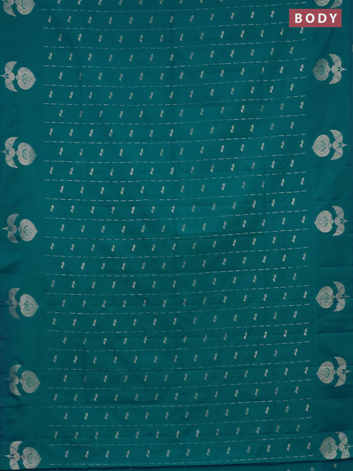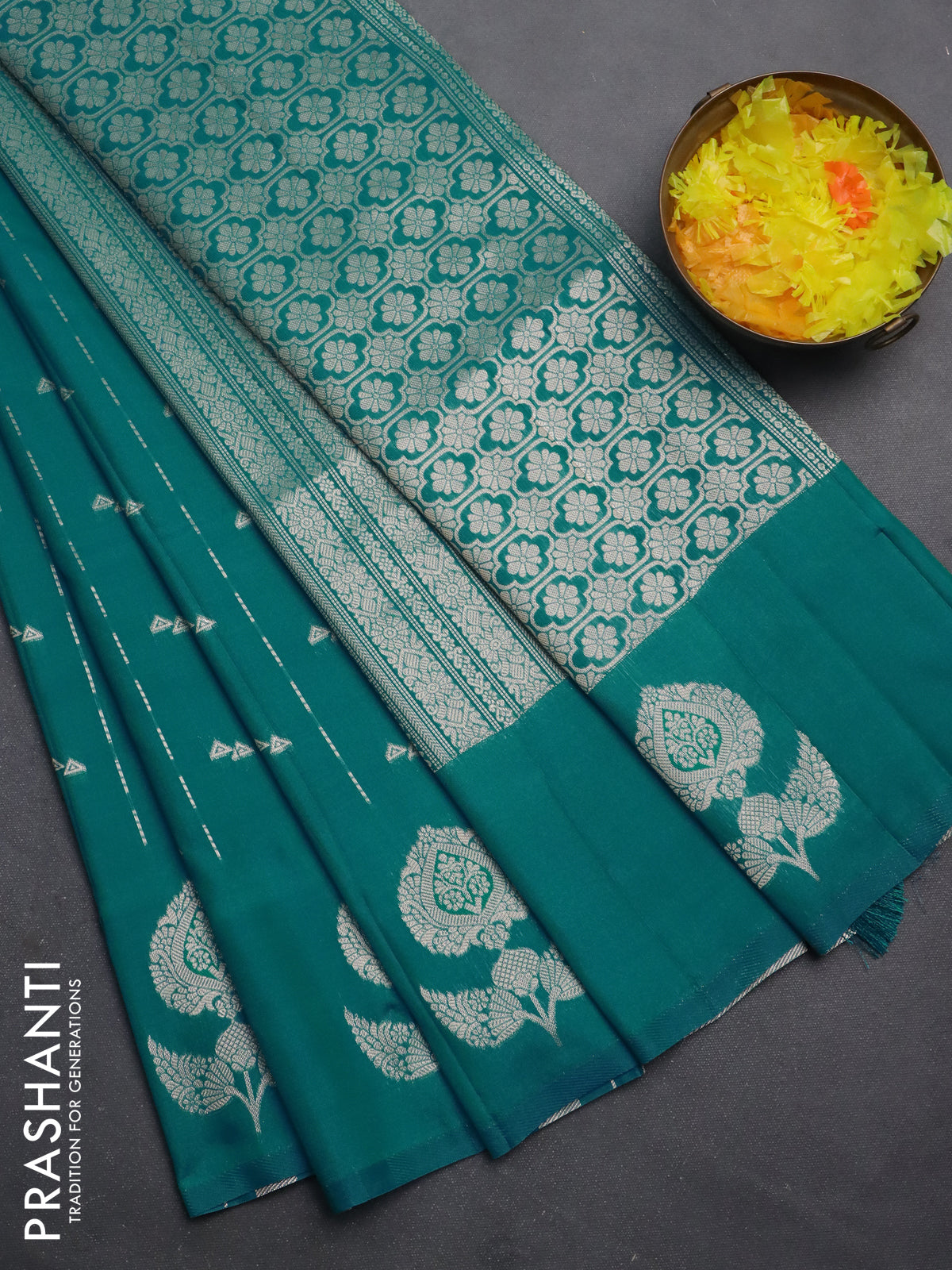 Semi soft silk saree teal blue with allover zari weaves and zari woven butta border