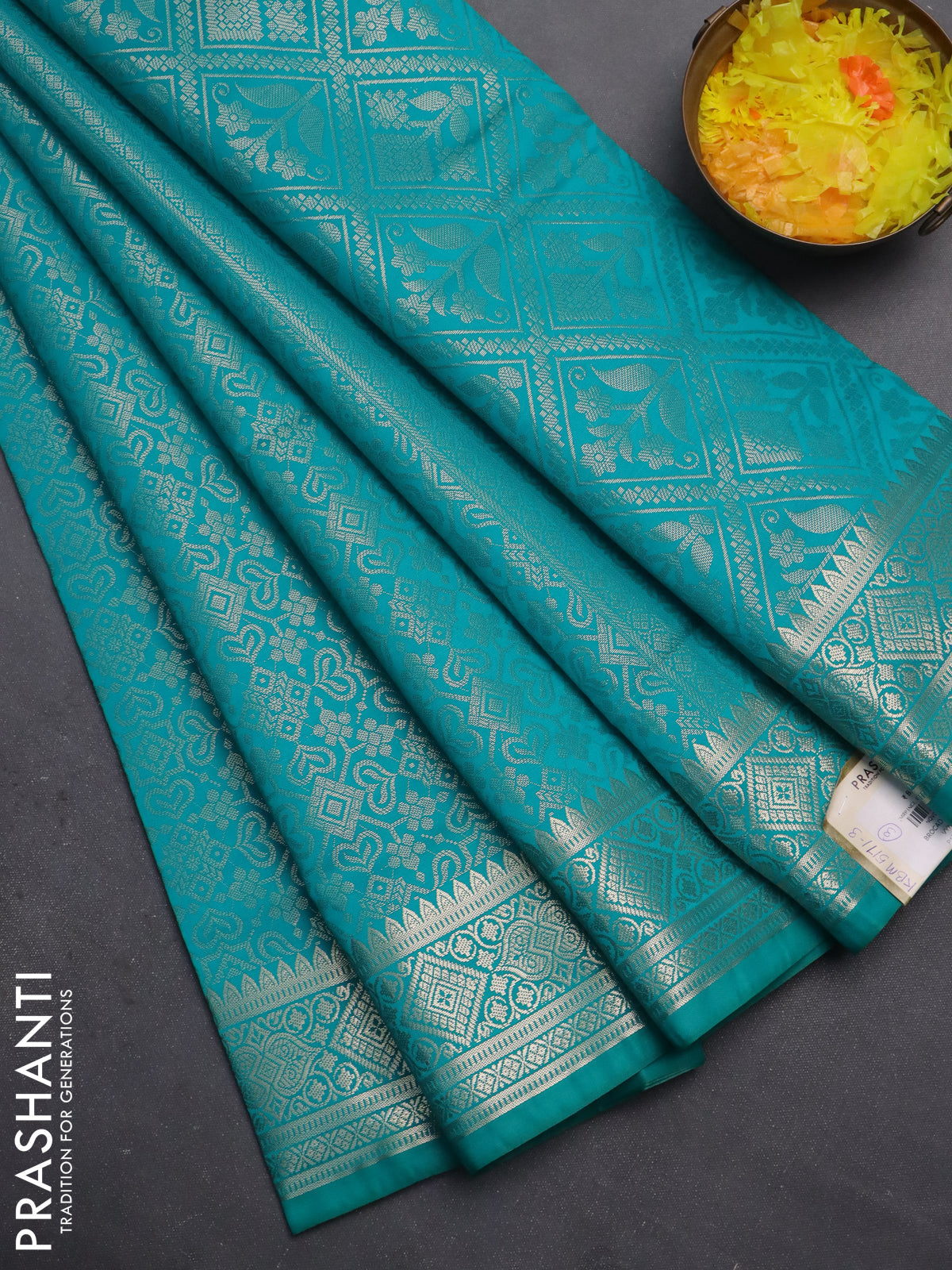 Semi soft silk saree teal blue with allover zari woven brocade weaves -Without blouse
