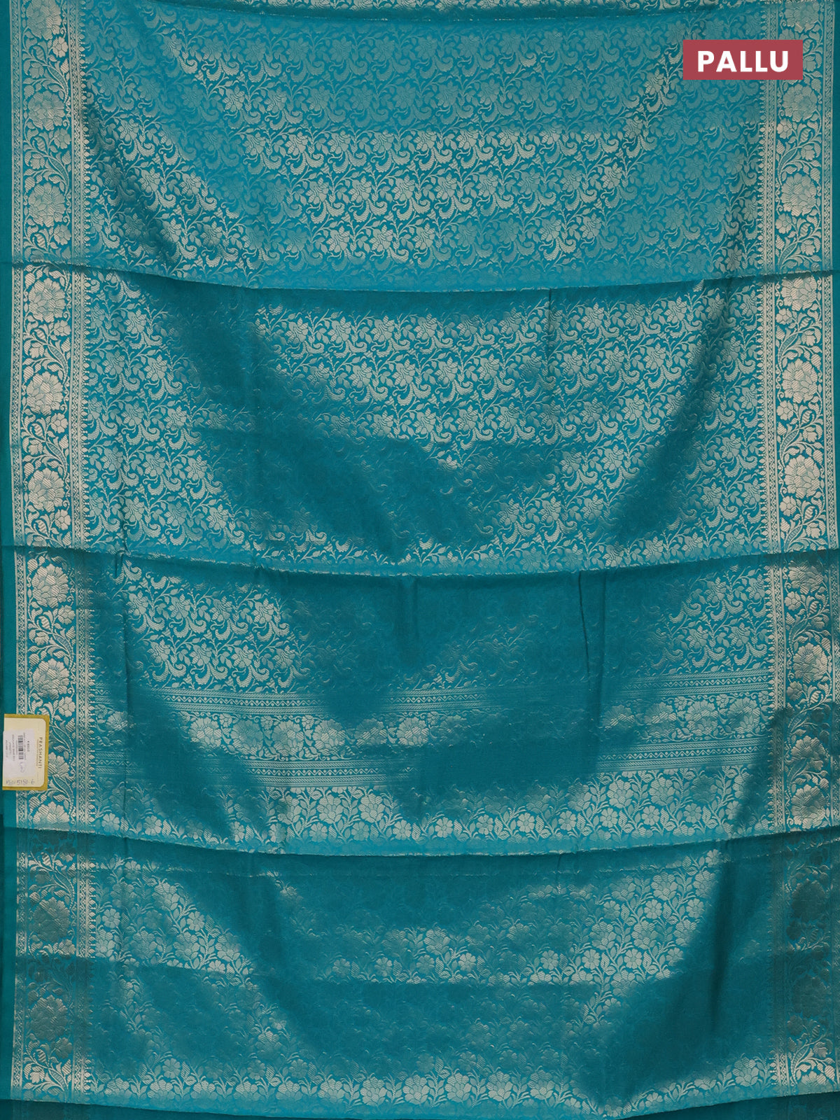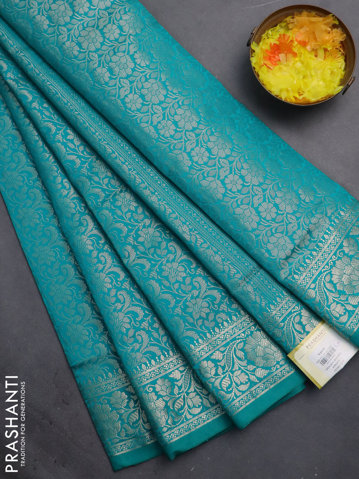 Semi soft silk saree teal blue with allover zari woven brocade weaves -Without blouse