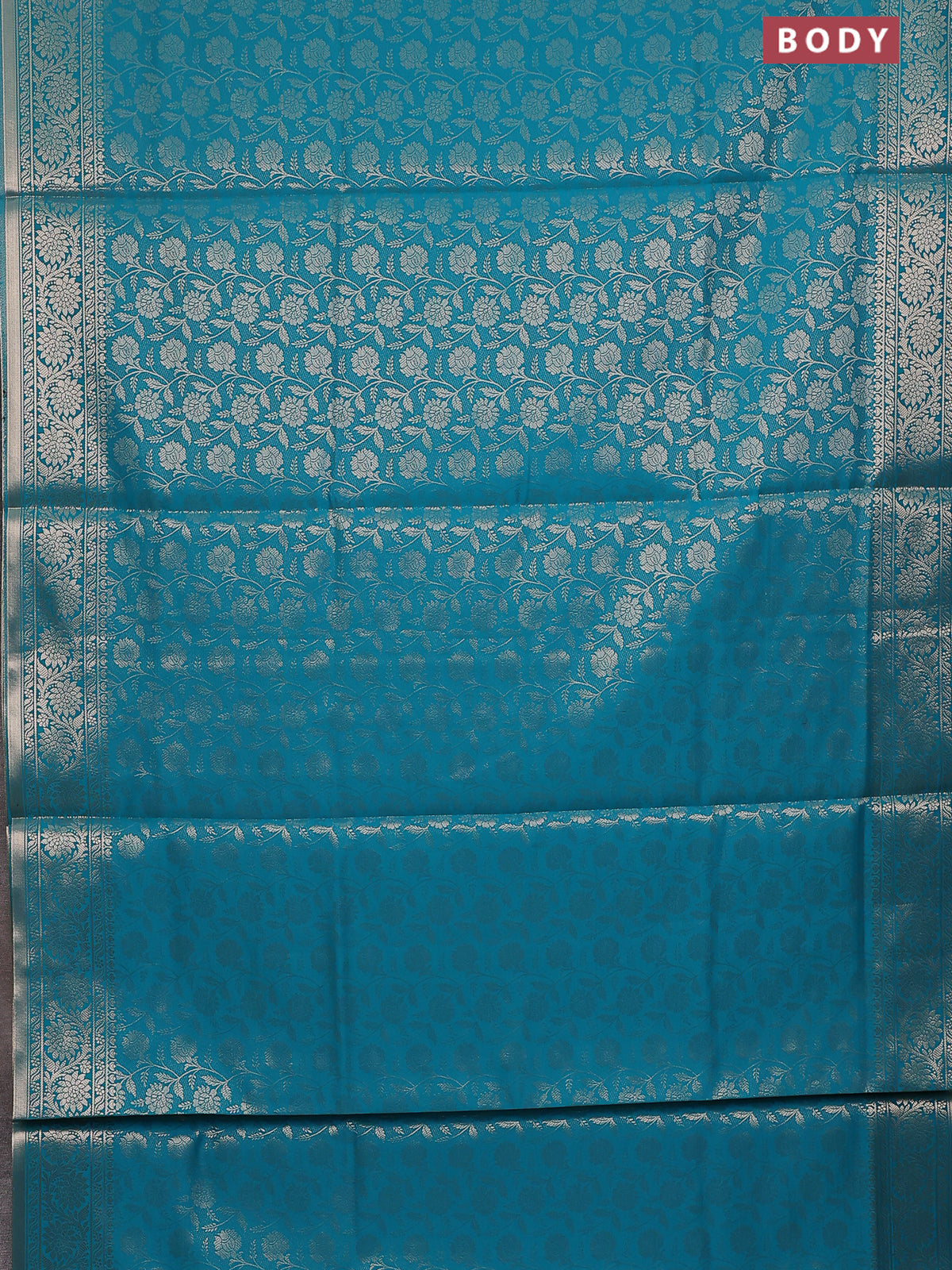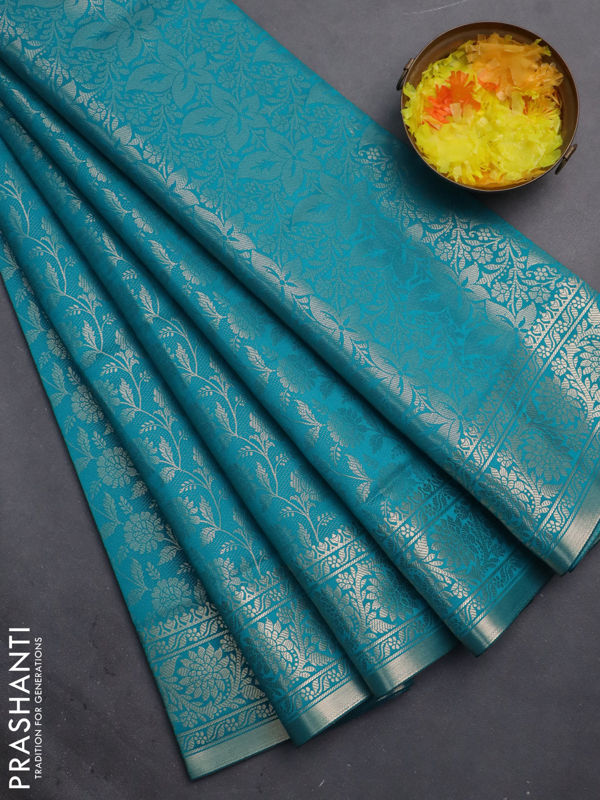 Semi soft silk saree teal blue with allover zari woven brocade weaves -Without blouse