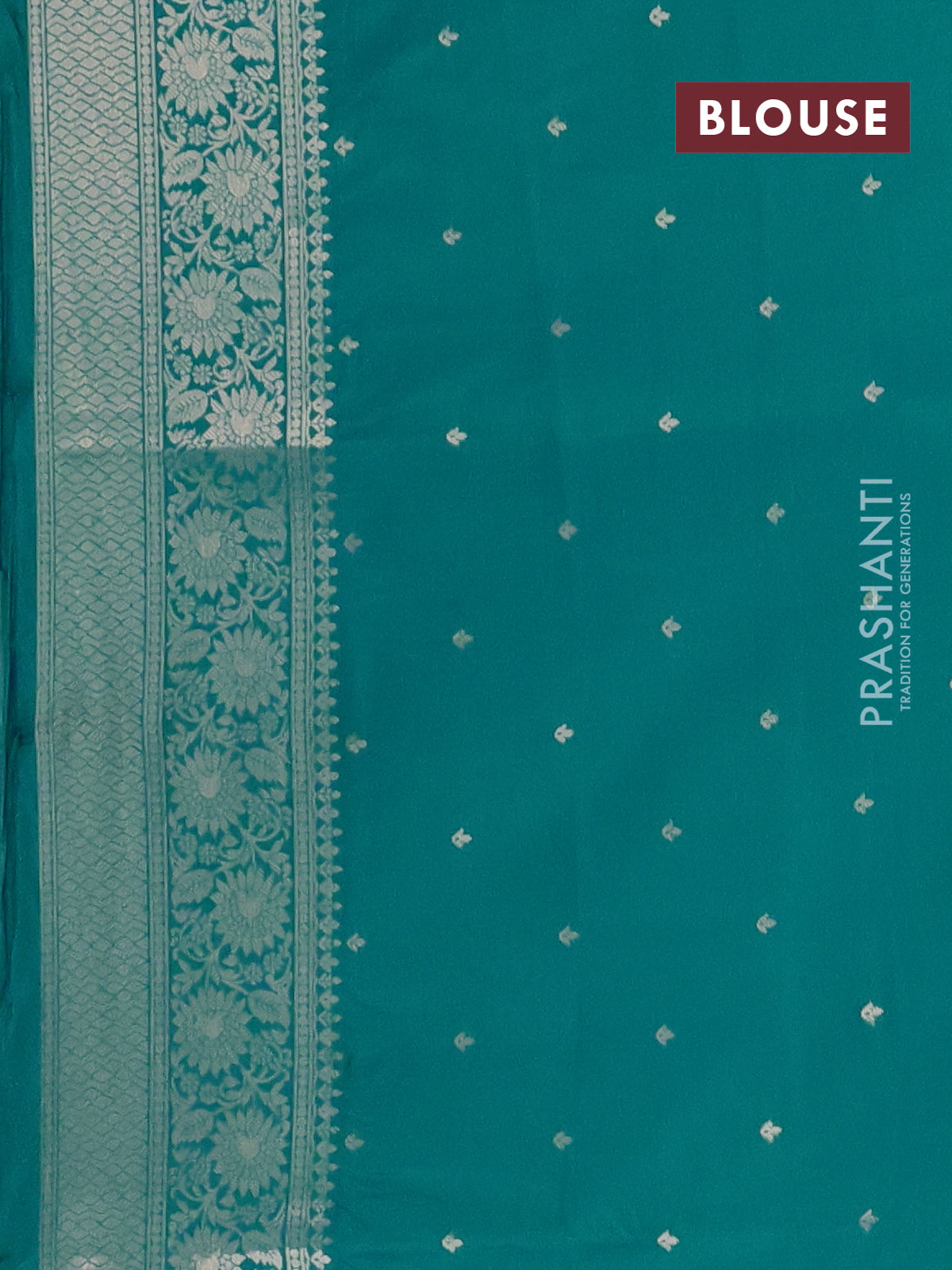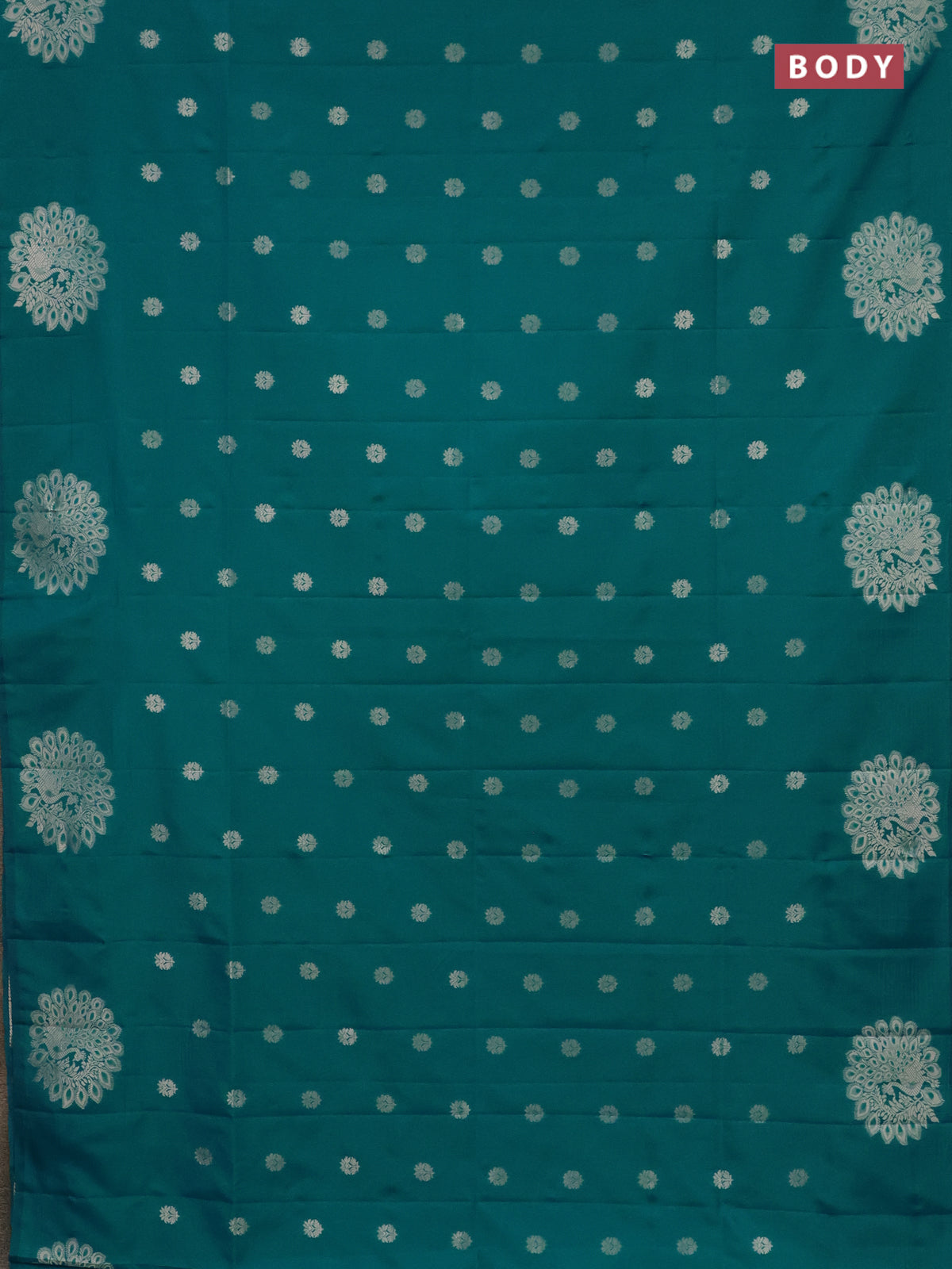 Semi soft silk saree teal blue with zari woven buttas and zari woven peacock butta border