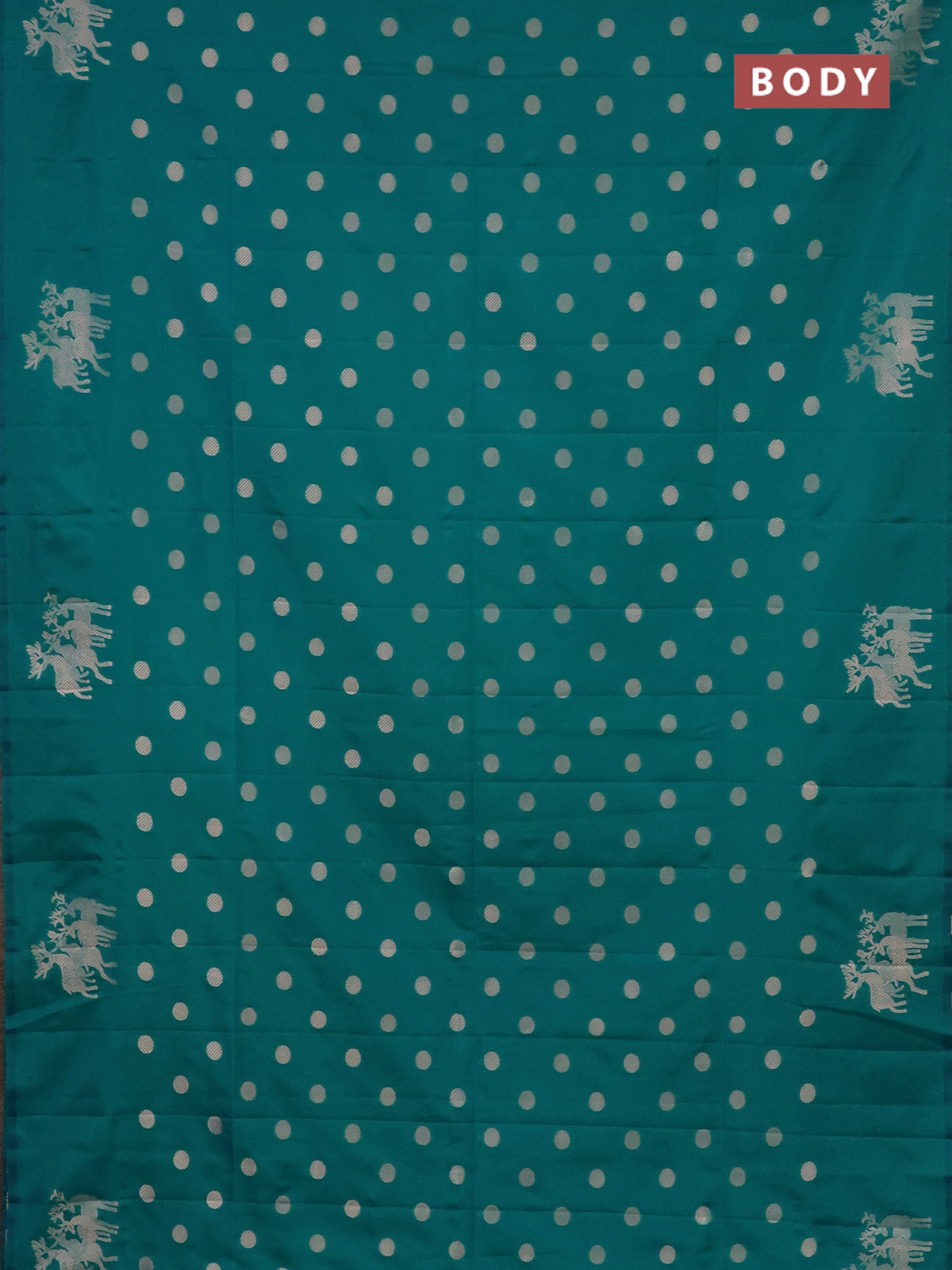 Semi soft silk saree teal blue with zari woven coin buttas and zari woven deer butta border