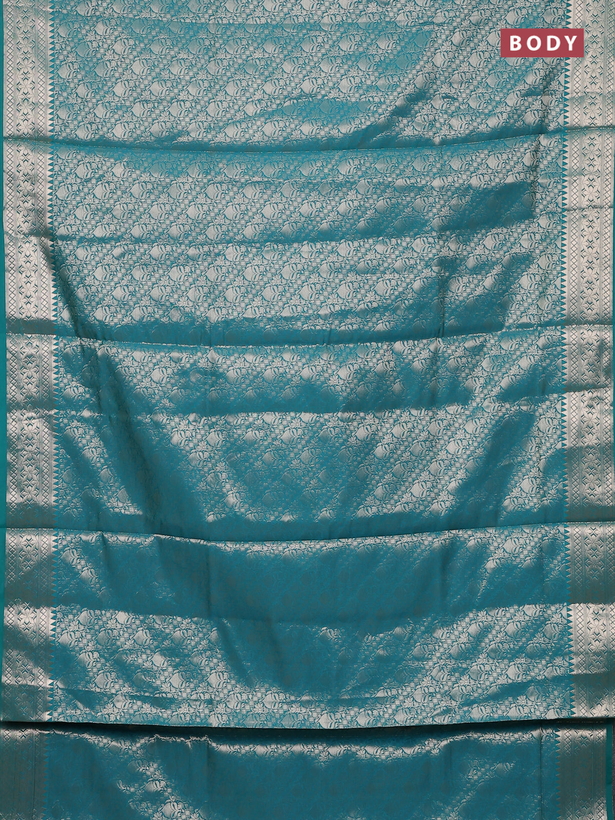 Semi soft silk saree teal green with allover zari woven brocade weaves -Without blouse