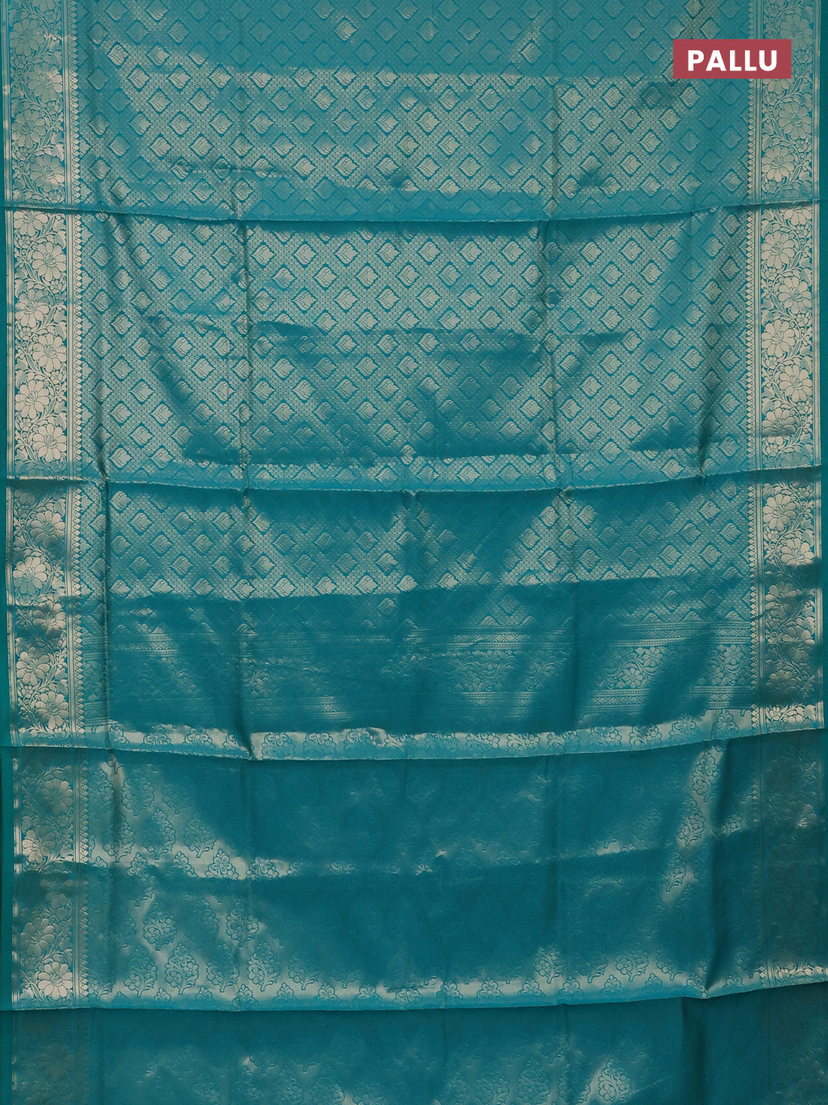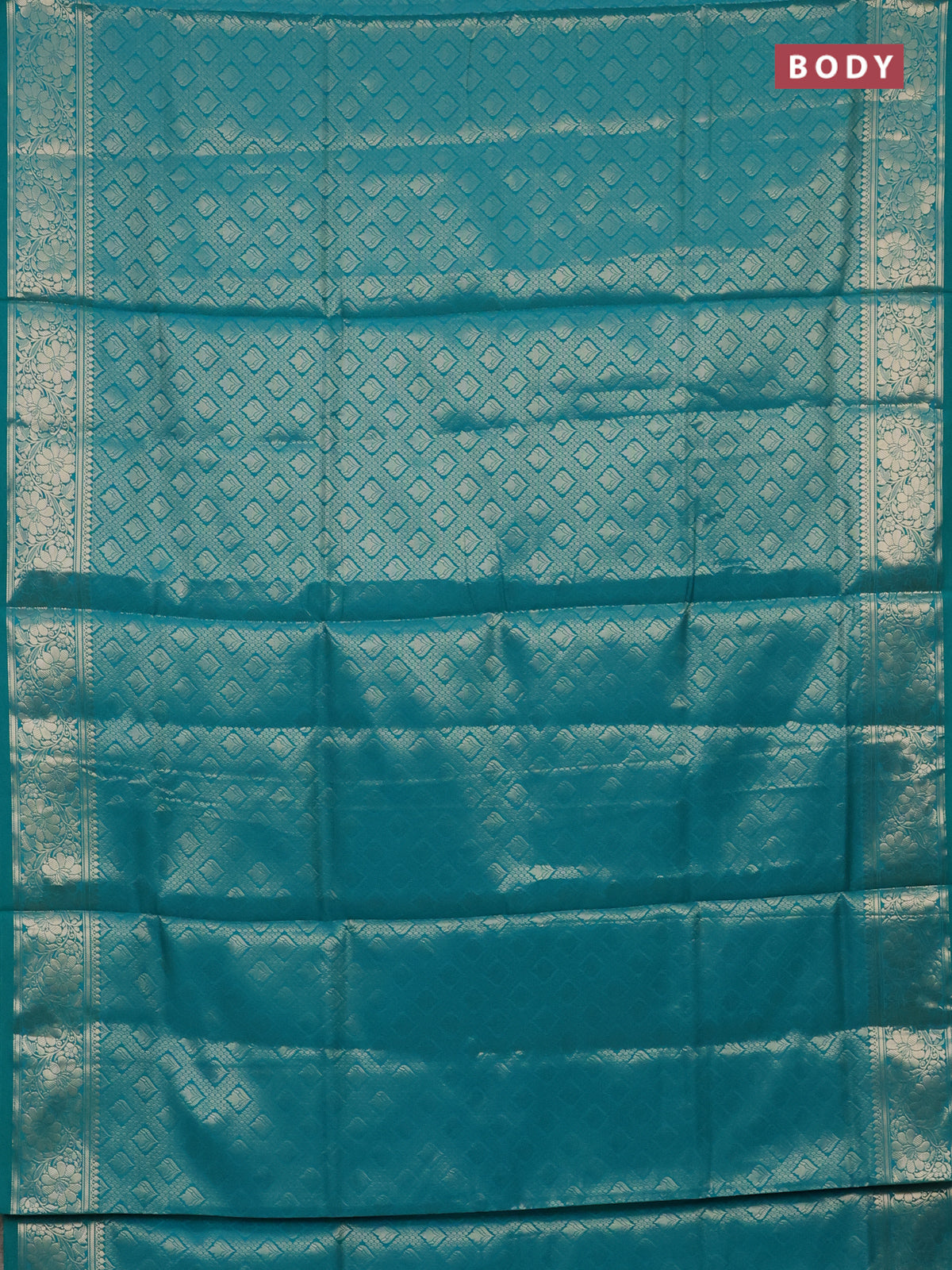 Semi soft silk saree teal green with allover zari woven brocade weaves -Without blouse