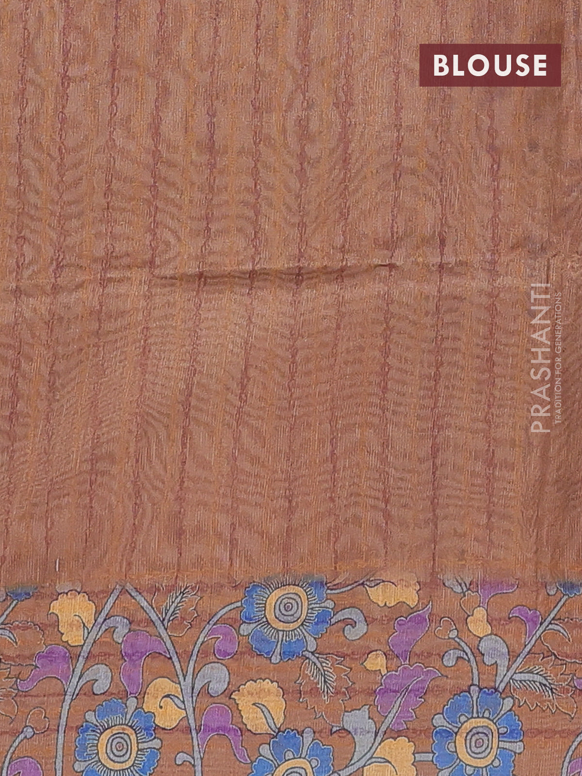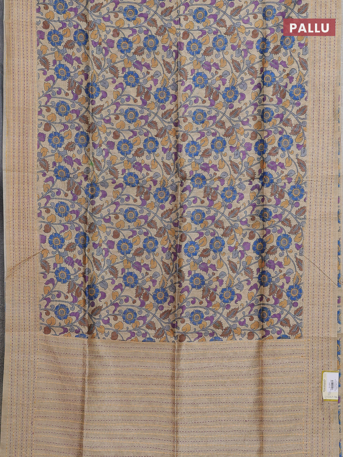 Semi tussar saree beige and brown with allover kalamkari prints and katha stitch work pallu & border