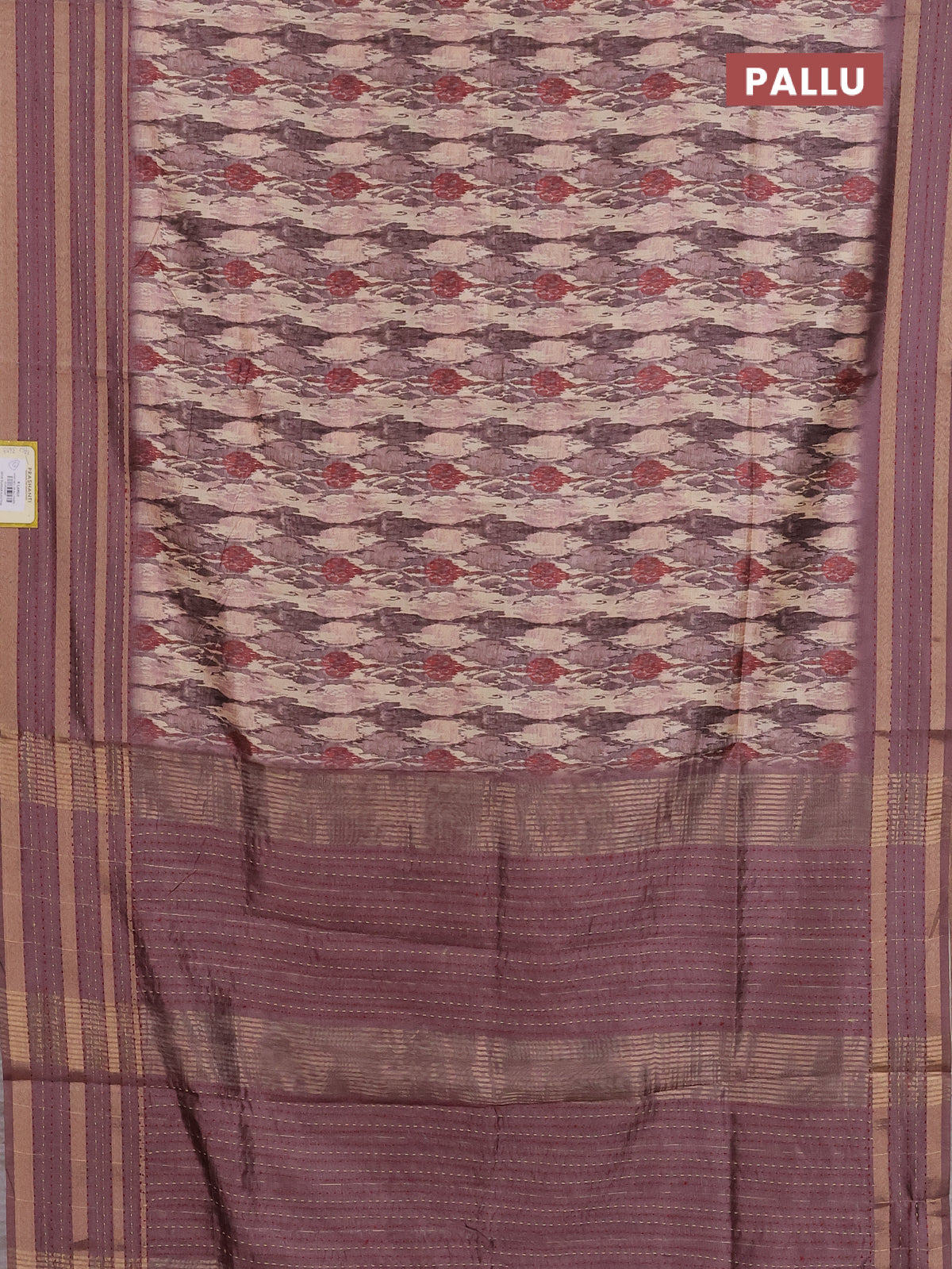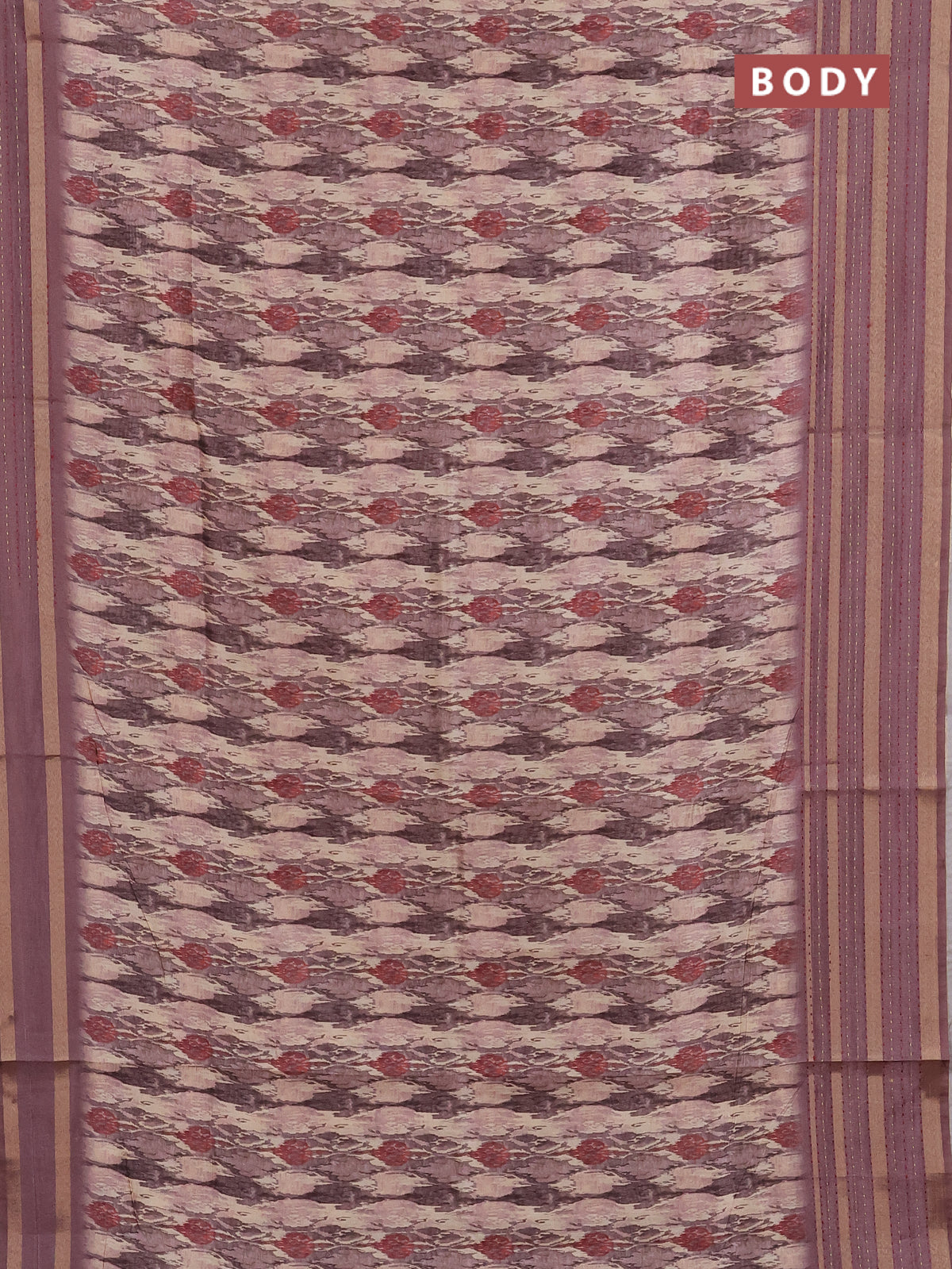 Semi tussar saree beige and brown with allover prints and kantha stitch work border