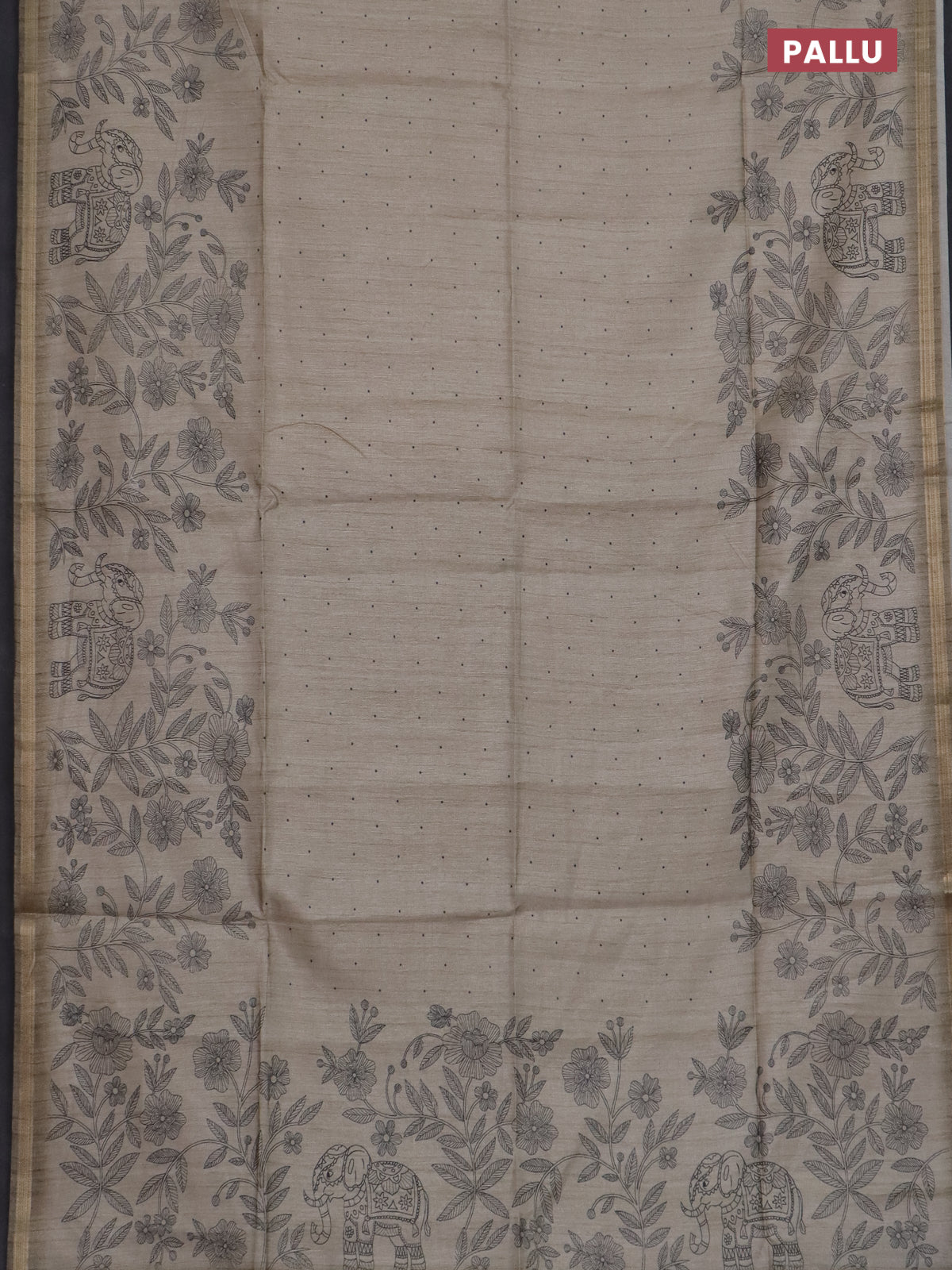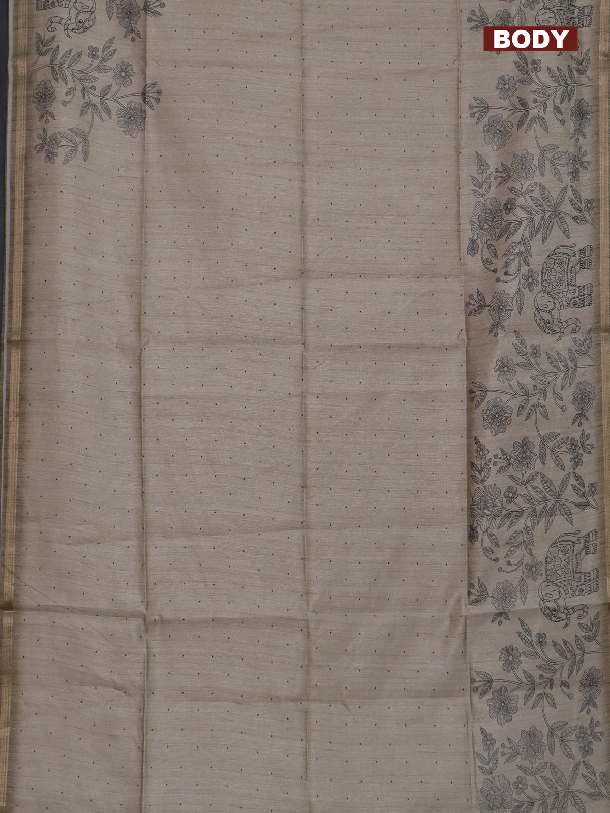 Material : Semi Tussar Blouse : Attached Length of saree : 6.2 mts (5.5 mts saree & 70 cms blouse)... Read more