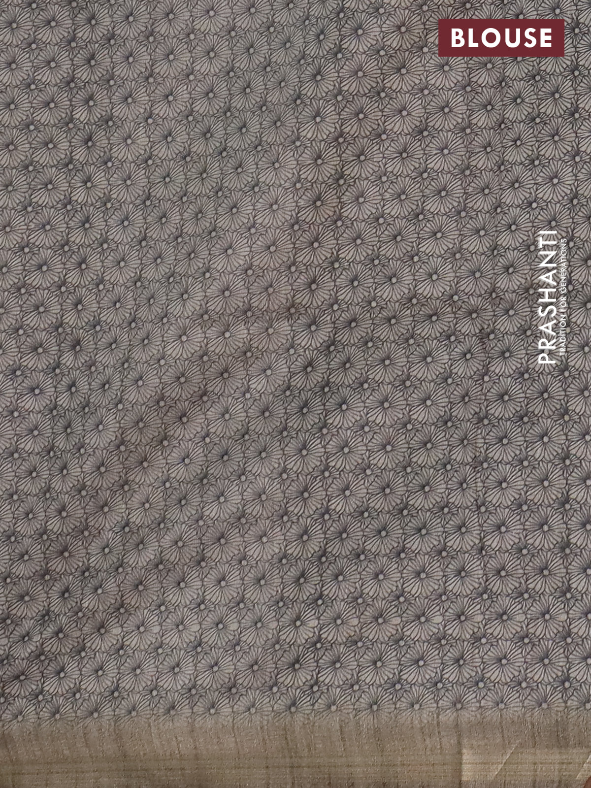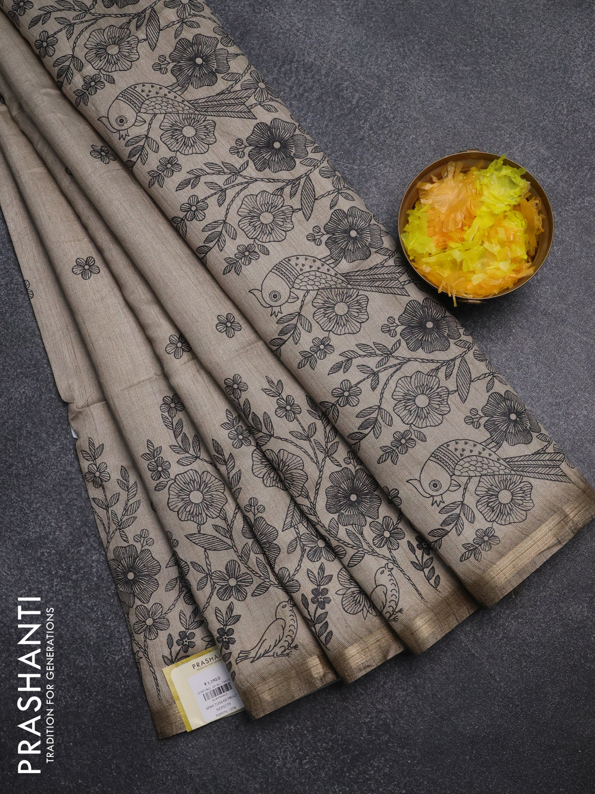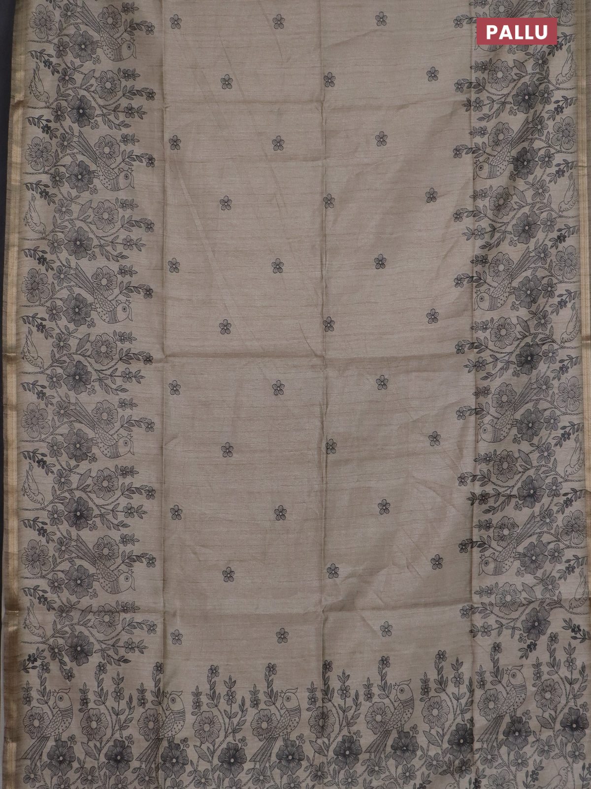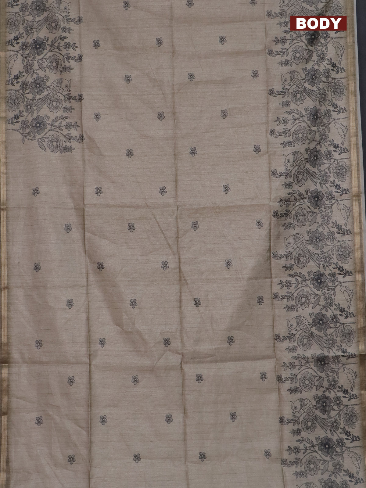 Semi tussar saree beige with allover floral butta prints and long printed border