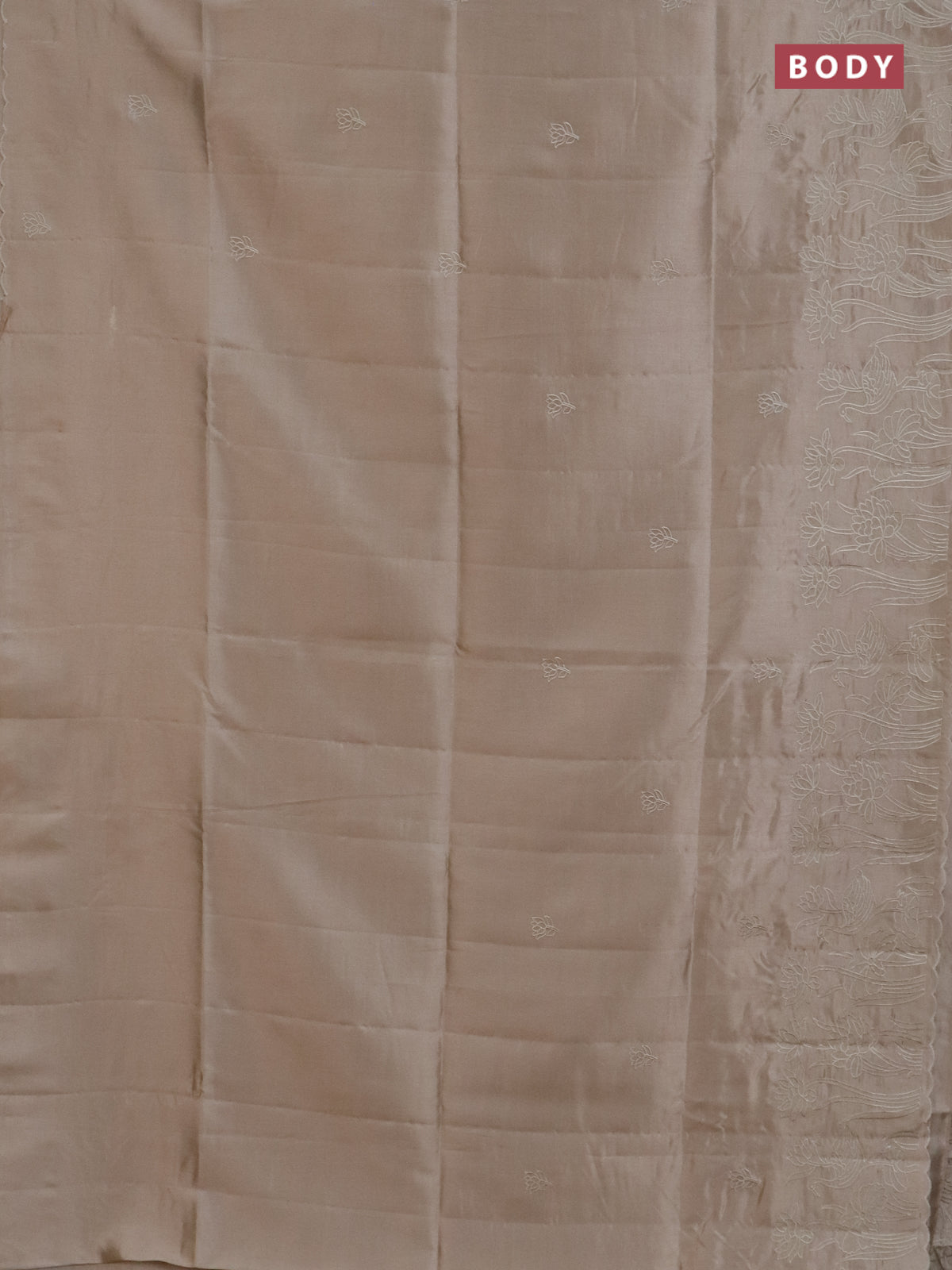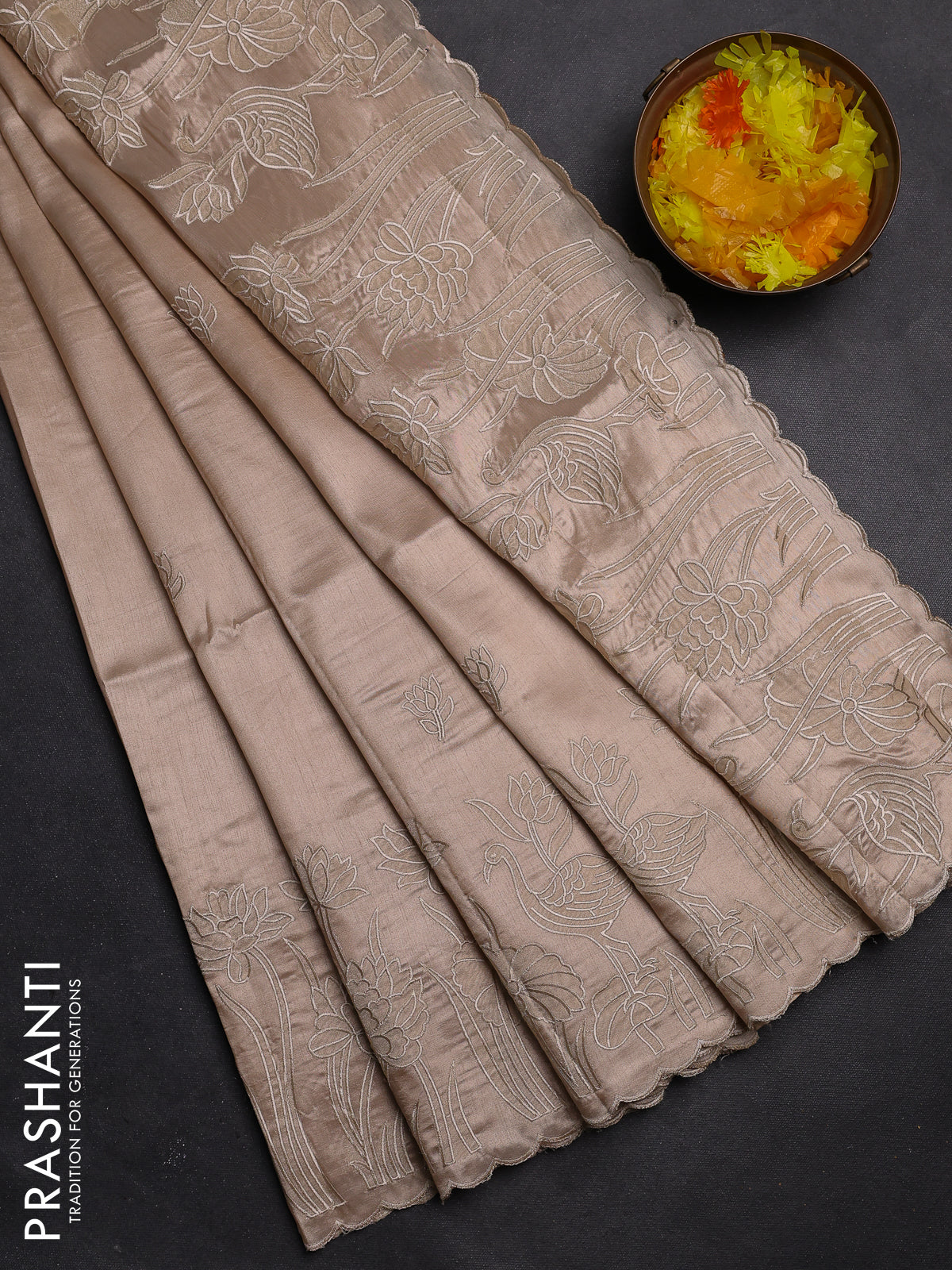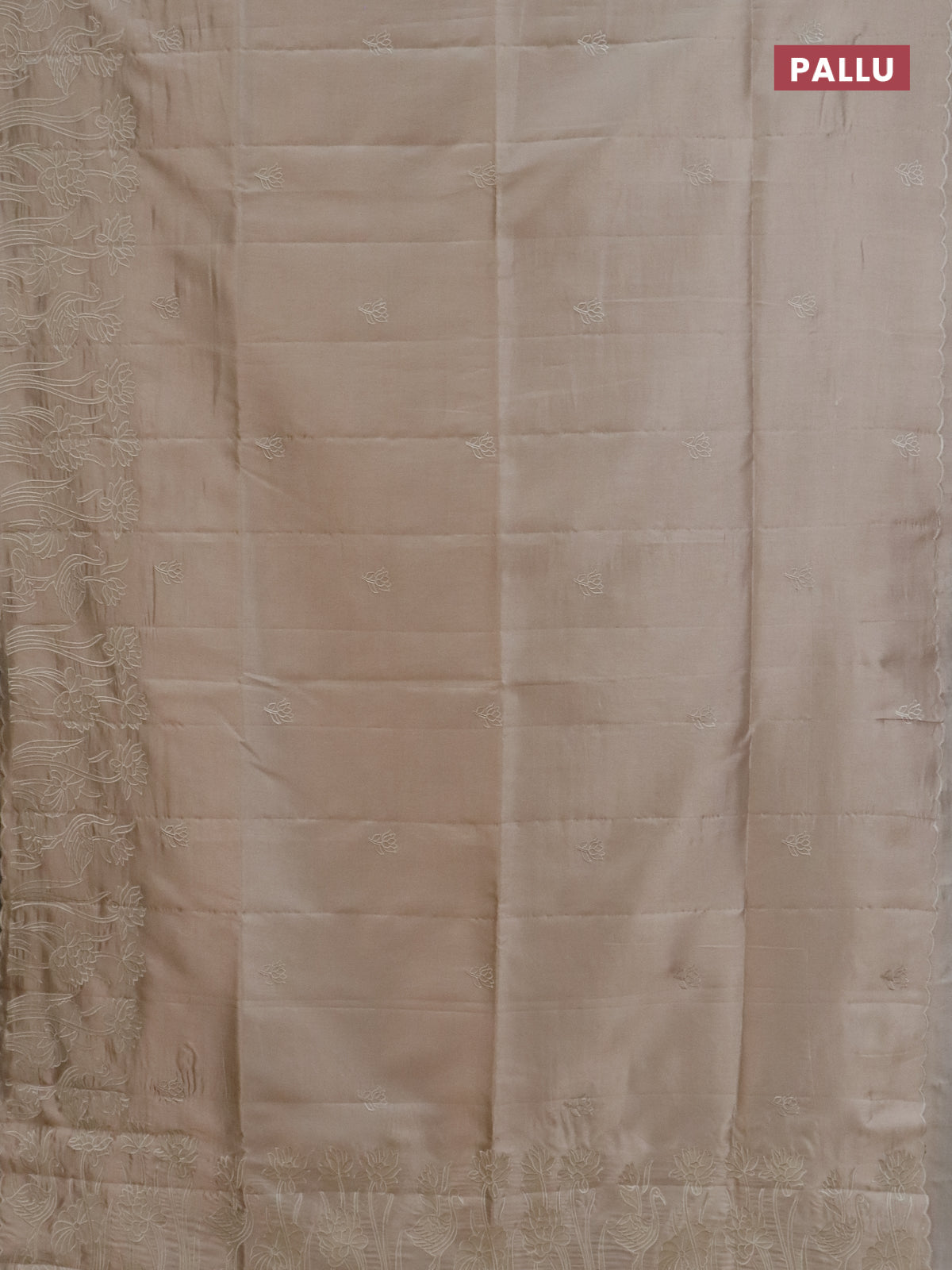 Semi tussar saree beige with floral embroidery work and applique work border