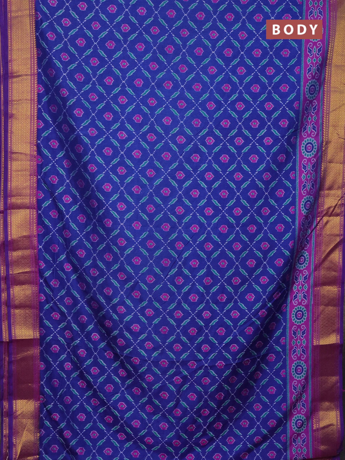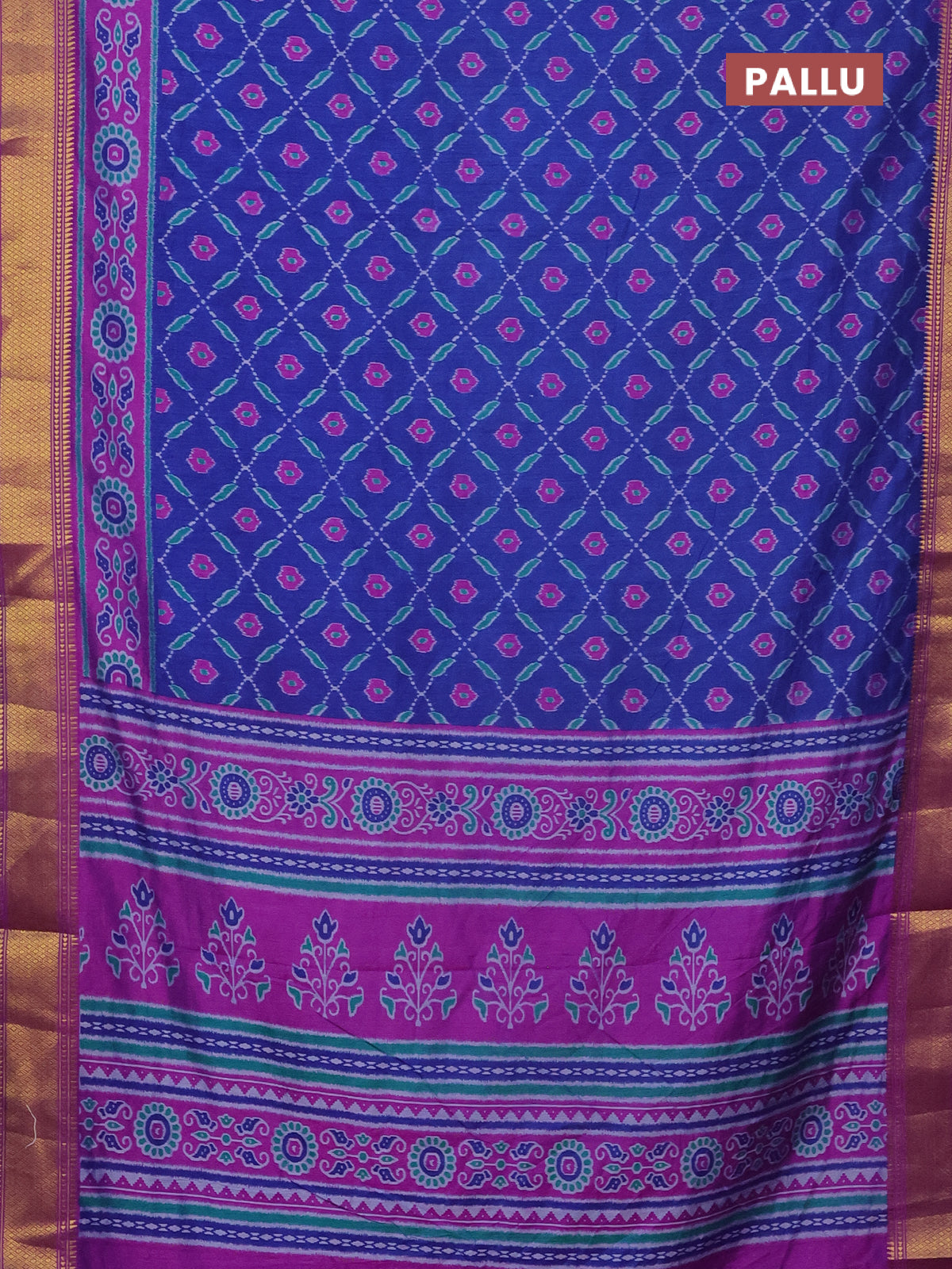 Semi tussar saree blue and purple with allover ikat prints and zari woven border