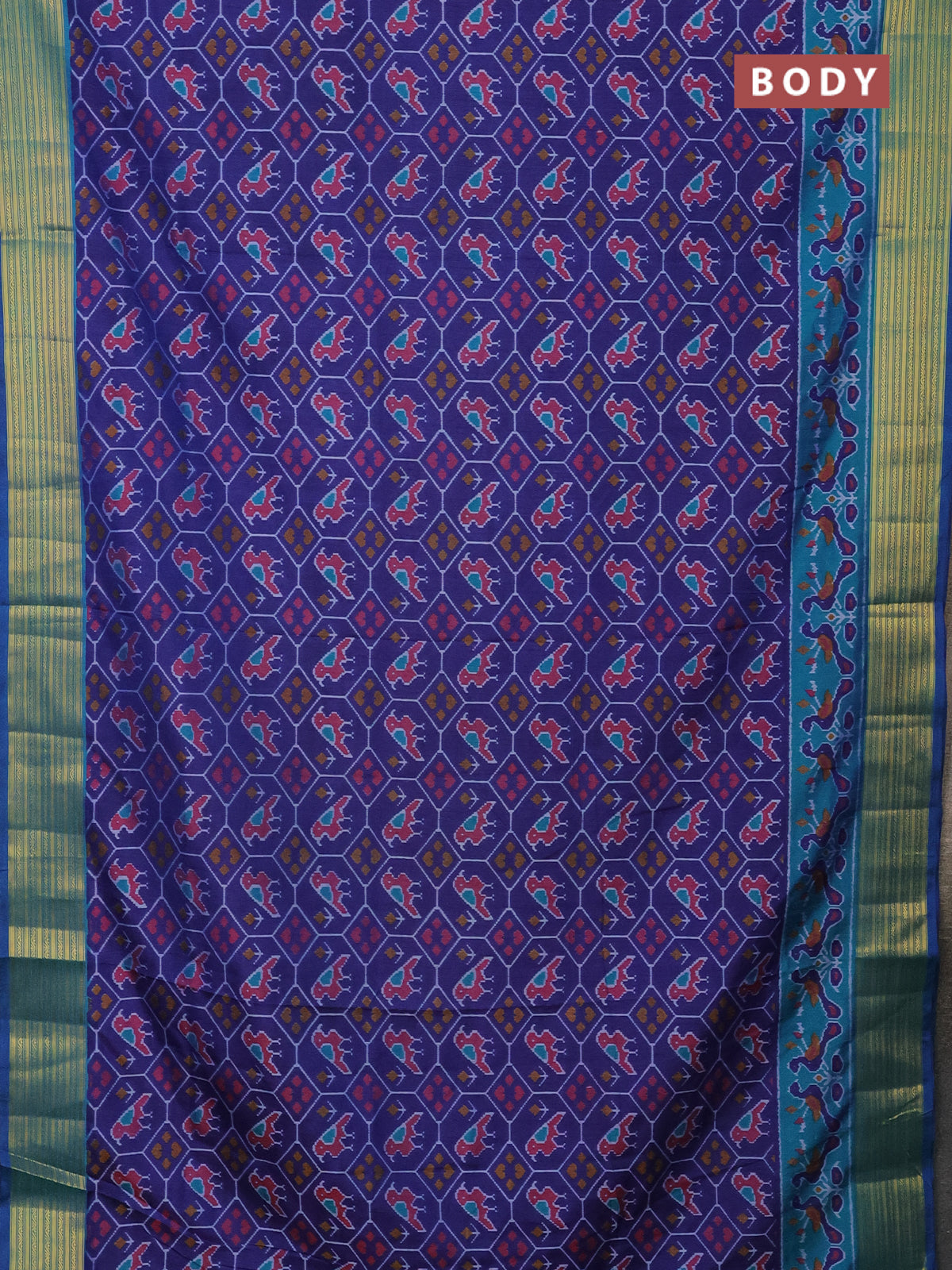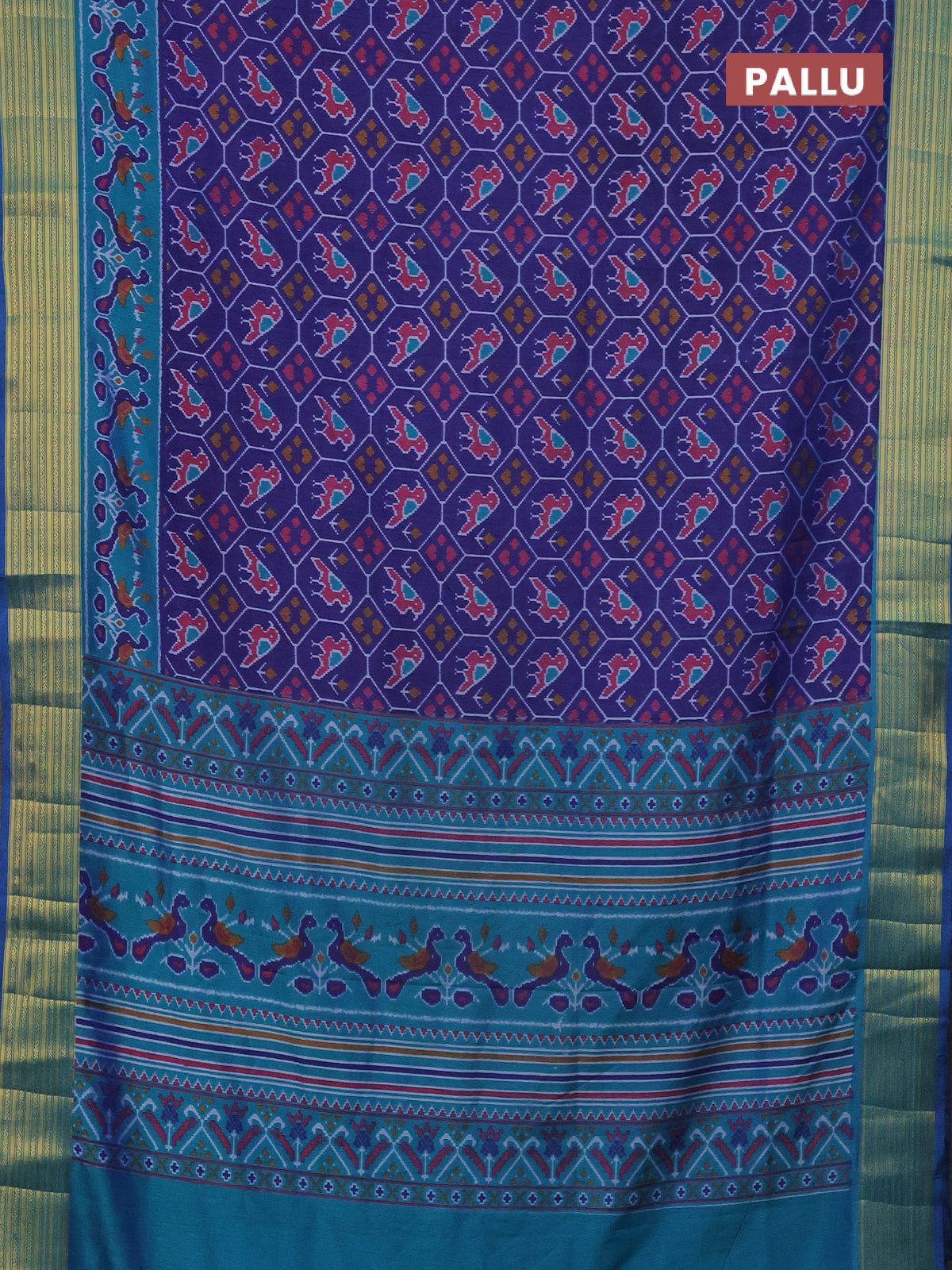 Semi tussar saree blue and teal blue with allover patola prints and zari woven border