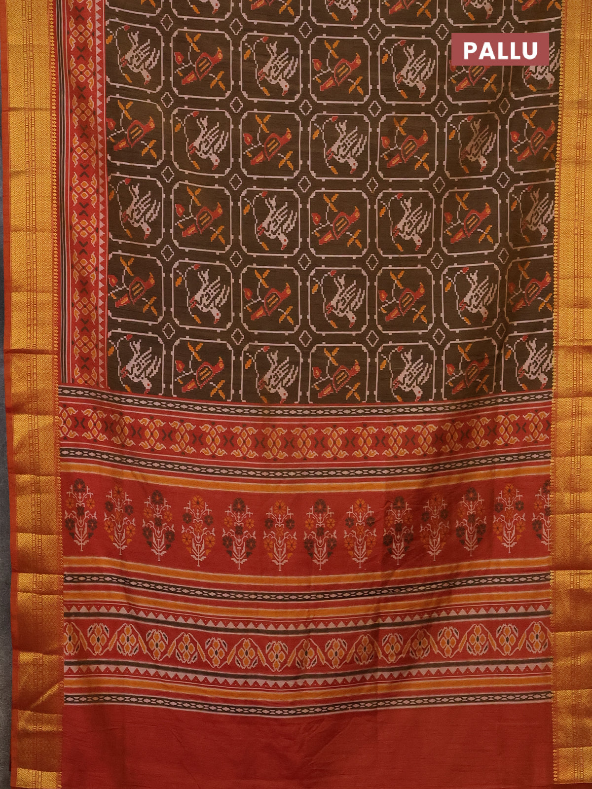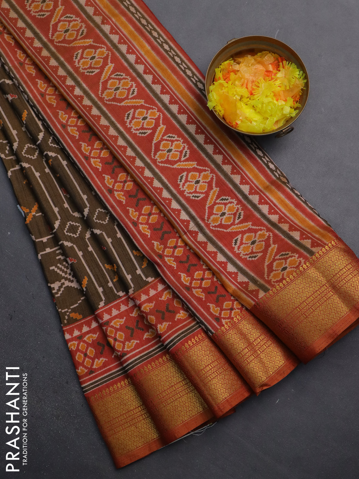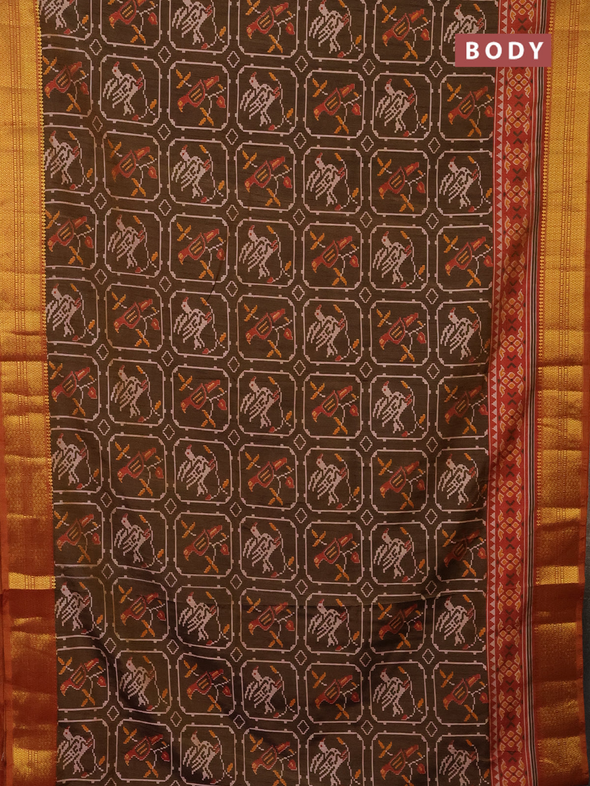 Semi tussar saree brown and dual shade of pink with allover ikat prints and zari woven border