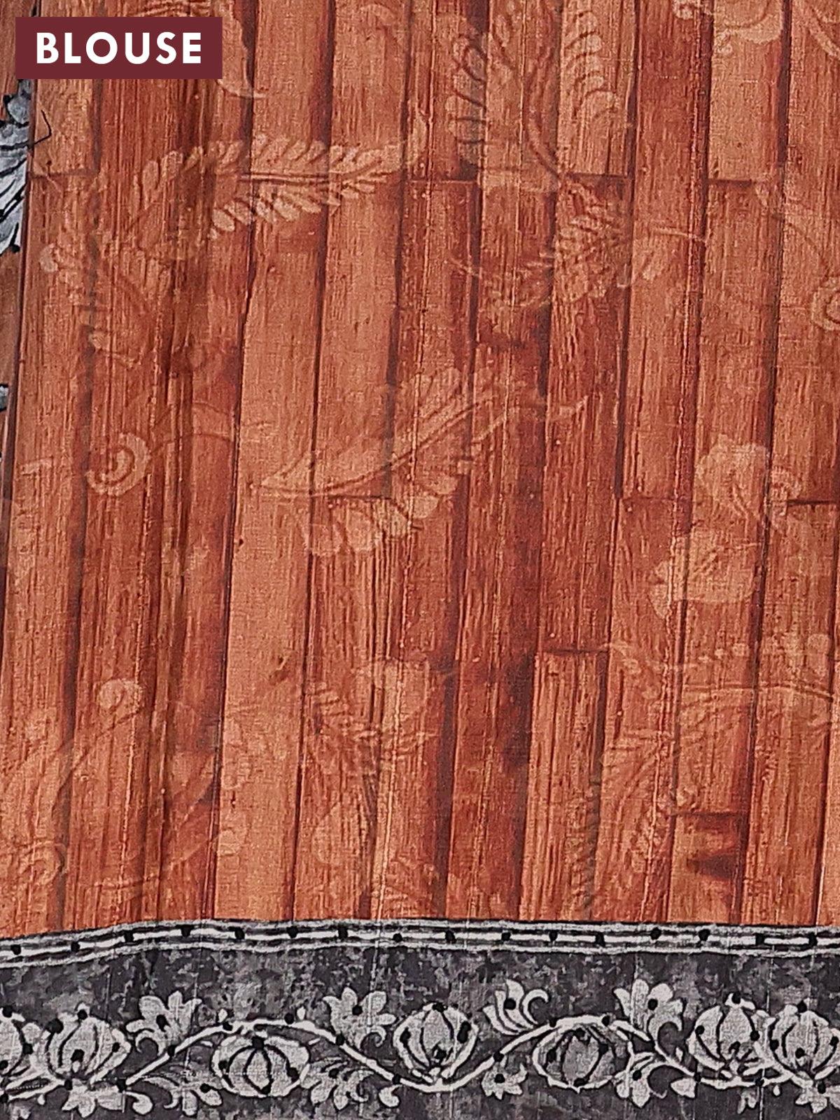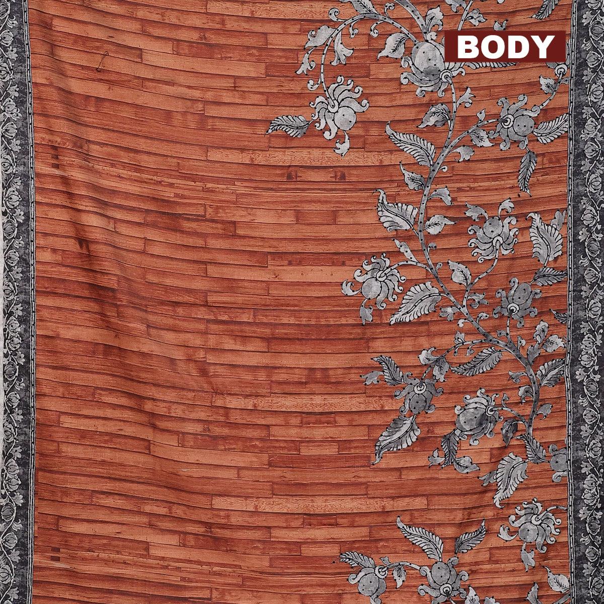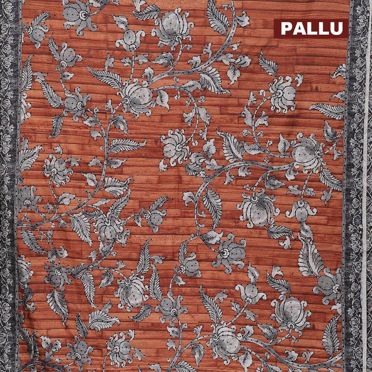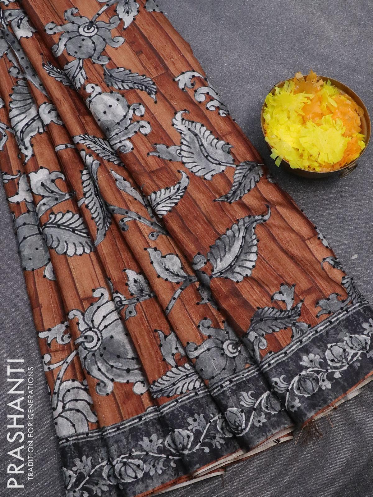 Semi tussar saree brown and grey with kalamkari prints & french knot work and printed border